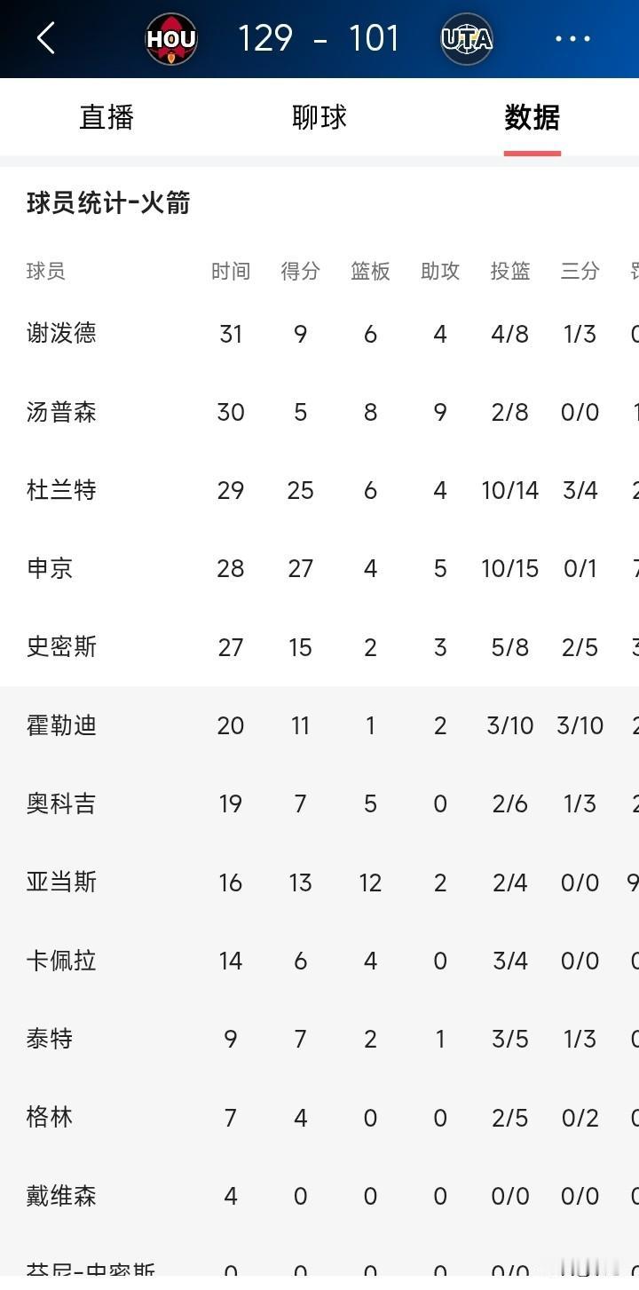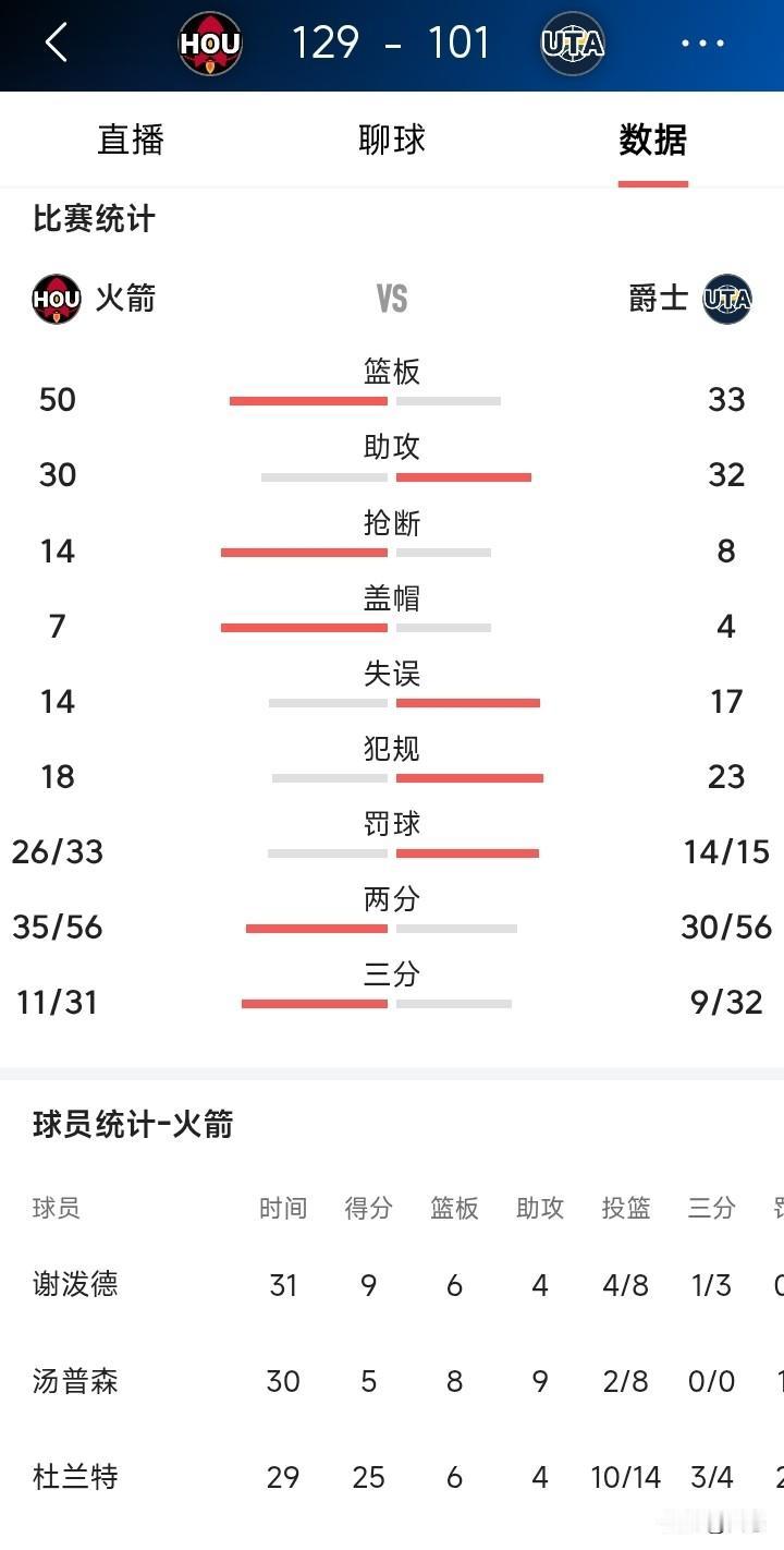 火箭和爵士的比赛,火箭129比101大比分赢球,看数据火箭的篮板球比对方整整多了17个,除非对方命中率极高才有可能赢球,不然那太难了。 不知道你们发现没有,替补席的火箭厚度太深了,抢篮板的人太多了,卡佩拉和亚当斯篮板保护得太好了。比快船的替补不知道要强多少。 现在又拥有杜兰特,虽然已经37岁了,杜兰特还是有油,有他在和没他在,可以说是相差很大的。 看好火箭能一飞冲天,把雷霆拉下马。 你们怎么看呢?火箭和雷霆比,差在哪里?