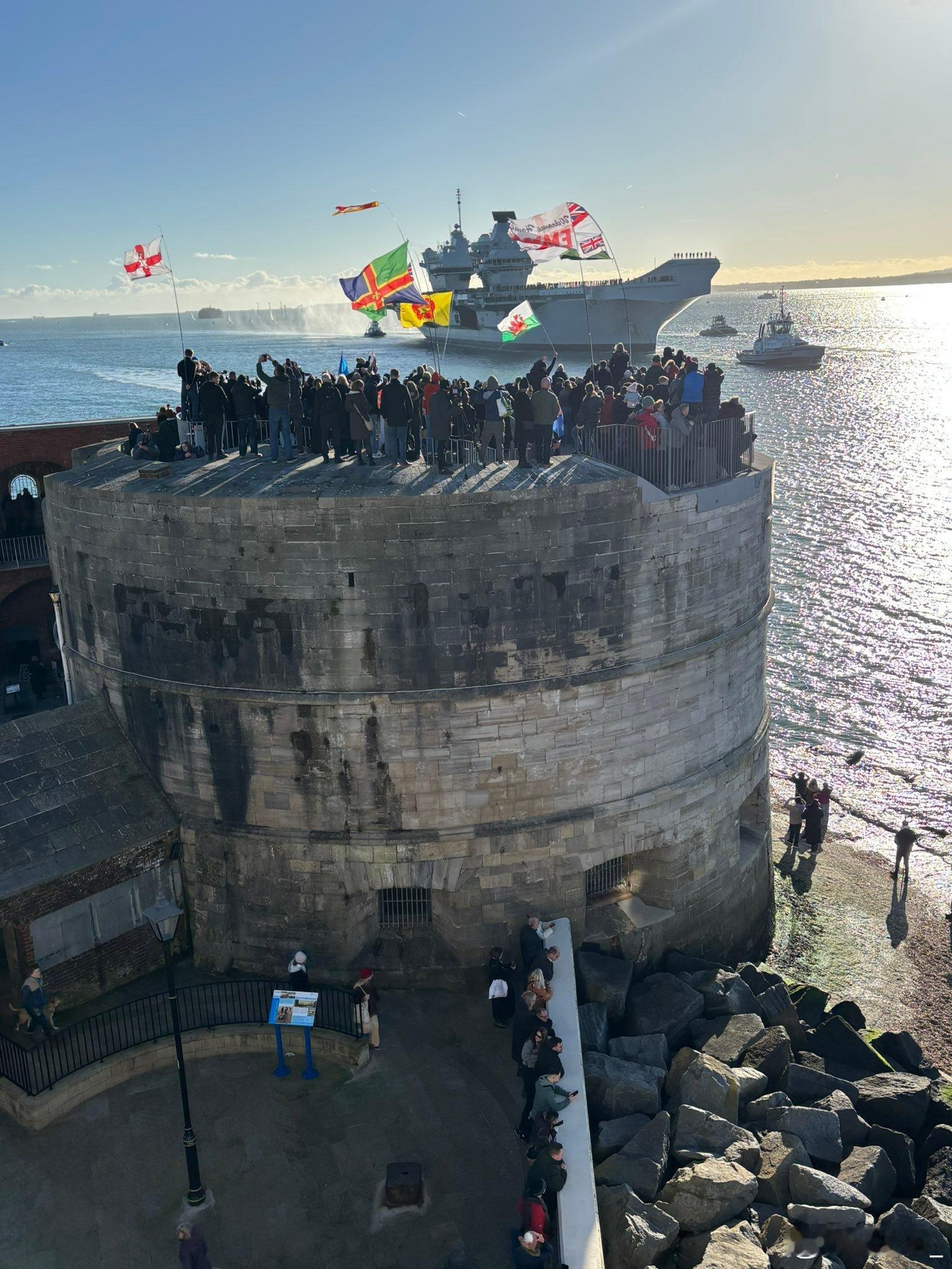 威尔士亲王号航母打击群昨天回到朴茨茅斯,该地举行了近20年来最盛大的海军返国欢迎仪式,有数千人参加。打击群此次印太部署共持续了7.5个月,总计陆续有超过4000名英国军事人员参与,打击群累计航行约4万海里。英国海军