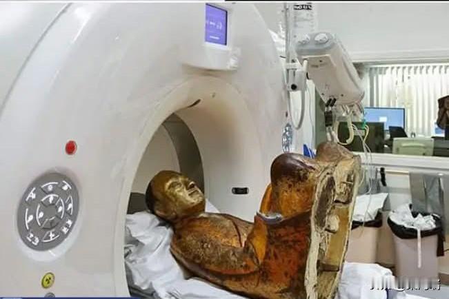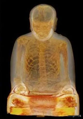 CT 扫描揭示了一座有 1000 年历史的佛像内有一个“木乃伊”佛教僧侣 2014年9月,荷兰阿默斯福特米安德医学中心的研究人员将一尊借给荷兰德伦茨博物馆的千年佛像,带到了一家先进的医院,希望借助现代医学技术揭开一个古老的谜团。 该博物馆2014年展品图册上的荷兰语介绍说,荷兰、意大利、德国的考古学家和荷兰的医学机构共同研究推测,这尊佛像应该是一尊中国福建乡村寺庙供奉的、内含肉身的佛像。碳14年份测定法显示,佛像内肉身可追溯到11世纪至12世纪之间,僧人死亡年份据推测在1022年至1155年之间,死亡年龄在三四十岁之间。 原来,这尊镀金佛像内藏着一个秘密:一位盘腿打坐的佛教僧侣木乃伊。这尊佛像自1995年被盗后首次在中国境外展出,并成为德伦茨博物馆近期完成的展览的核心展品,该展览展出了来自世界各地的60具人类和动物木乃伊。医院称这尊中国佛像为“史上最年长病人”,它被小心翼翼地放置在轮床上,供医生在鹿特丹世界博物馆客座策展人、佛教艺术与文化专家埃里克·布鲁因的监督下进行检查。放射科医生本·赫格尔曼将这尊古代文物缓慢地滑入一台高科技成像仪中进行全身CT扫描,并采集骨骼样本进行DNA检测。胃肠病学家雷诺德·韦尔梅登使用特制内窥镜从木乃伊的胸腔和腹腔中提取样本。如今,检测结果令人震惊:僧人的器官被取出,取而代之的是印有古汉字的纸片和其他尚未确定身份的腐烂物质。这些器官是如何从木乃伊体内取出的,至今仍是个谜。雕像内的遗体被认为是佛教大师六泉的遗体,他是一位中国禅宗成员,卒于公元1100年左右。六泉的遗体是如何出现在一尊中国古代雕像内的呢?遗体被发现时,被放在一捆刻有汉文的布上;研究人员认为,这位僧人可能进行过“自我木乃伊化”的仪式,为死后的生活做准备,僧侣们希望将自己转化为受人尊敬的“活佛”。
