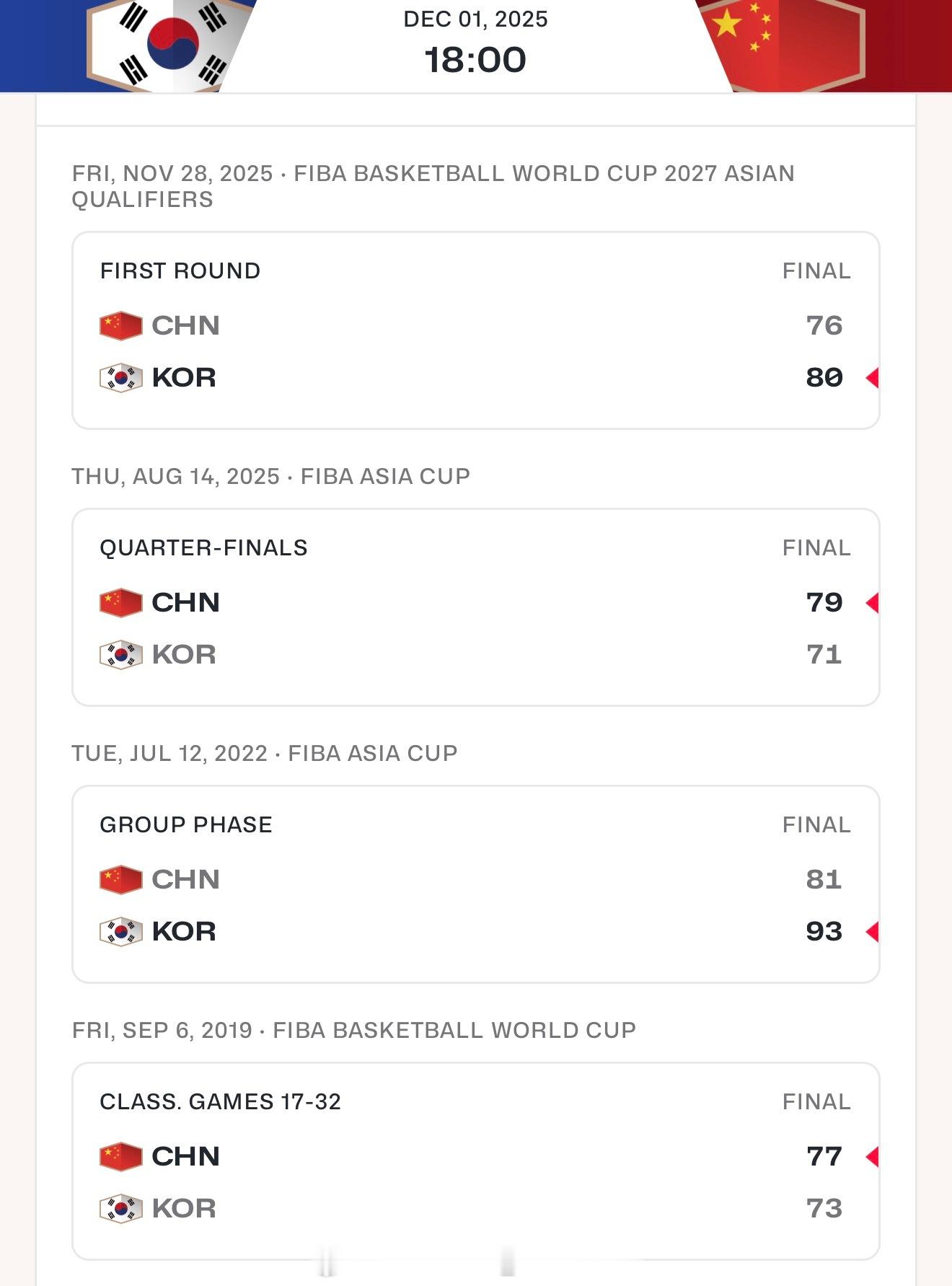 在过去14年中韩男篮之间打了10场比赛,非常有意思的是两支球队一直保持着你赢一场我赢一场,来回交替了14年,如果按照这个定律的话,今晚中国男篮肯定没问题中国男篮vs韩国男篮