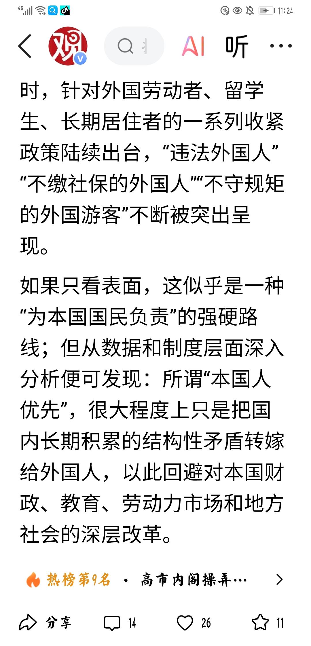 欢迎日本•闭关锁国 个人观点:个人非常乐意看到日本推行“本国人优先”的国策,因为日本人不想着正面积极的解决问题,反而选择回避,逃避,甩锅,掩盖甚至是蓄意看不见问题。 日本当前领导层的这种执政心态,不正是日本衰落的原因吗? 日本衰弱是全世界大多数人的民心民意,非常渴望看到的事实。 个人非常不理解,为什么有人会去日本,好好的陆地不去,非要去那么一个小小的频繁发生地质灾害的岛国?