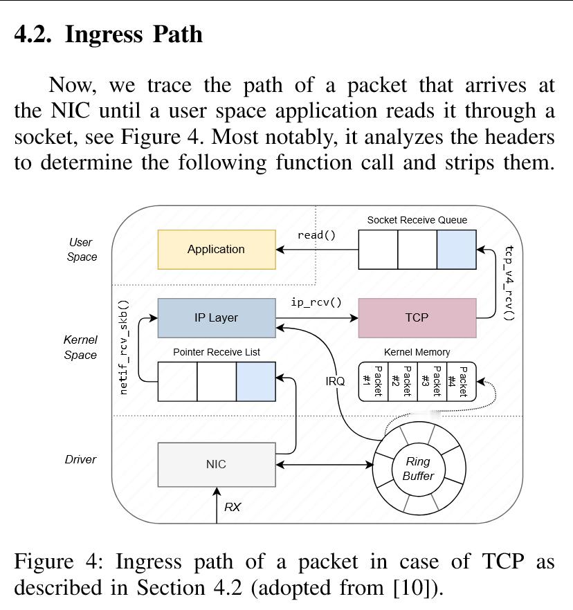 Linux 内核(版本 5.10.8)中网络数据包的完整处理路径。www.net.in.tum.de/fileadmin/TUM/NET/NET-2024-04-1/NET-2024-04-1_16.pdf文章重点分析了 TCP/IPv4 和 UDP/IPv4 协议栈的 出站(Egress) 和 入站(Ingress) 流程科技先锋官