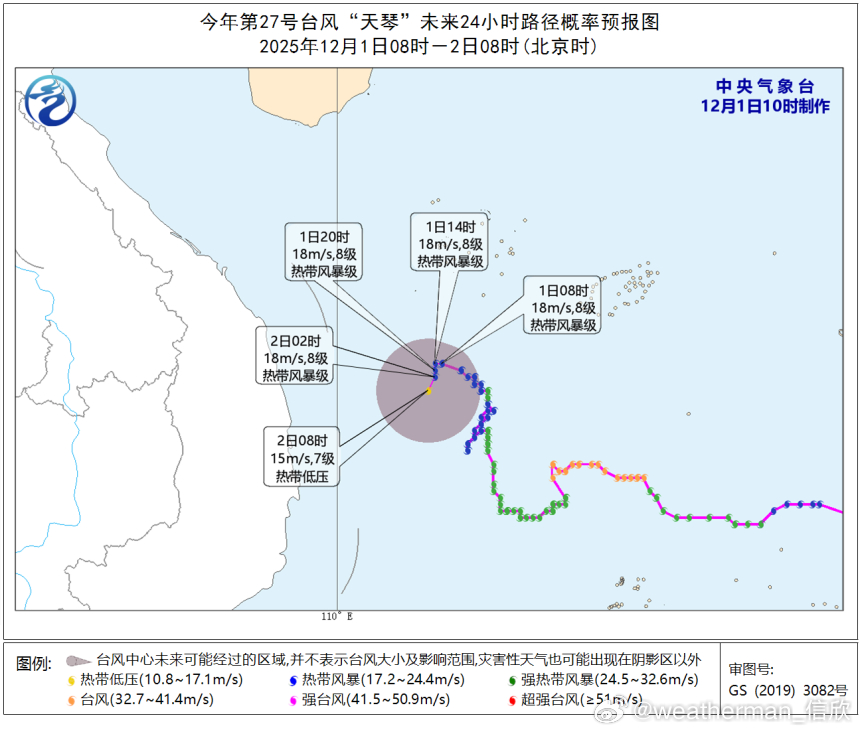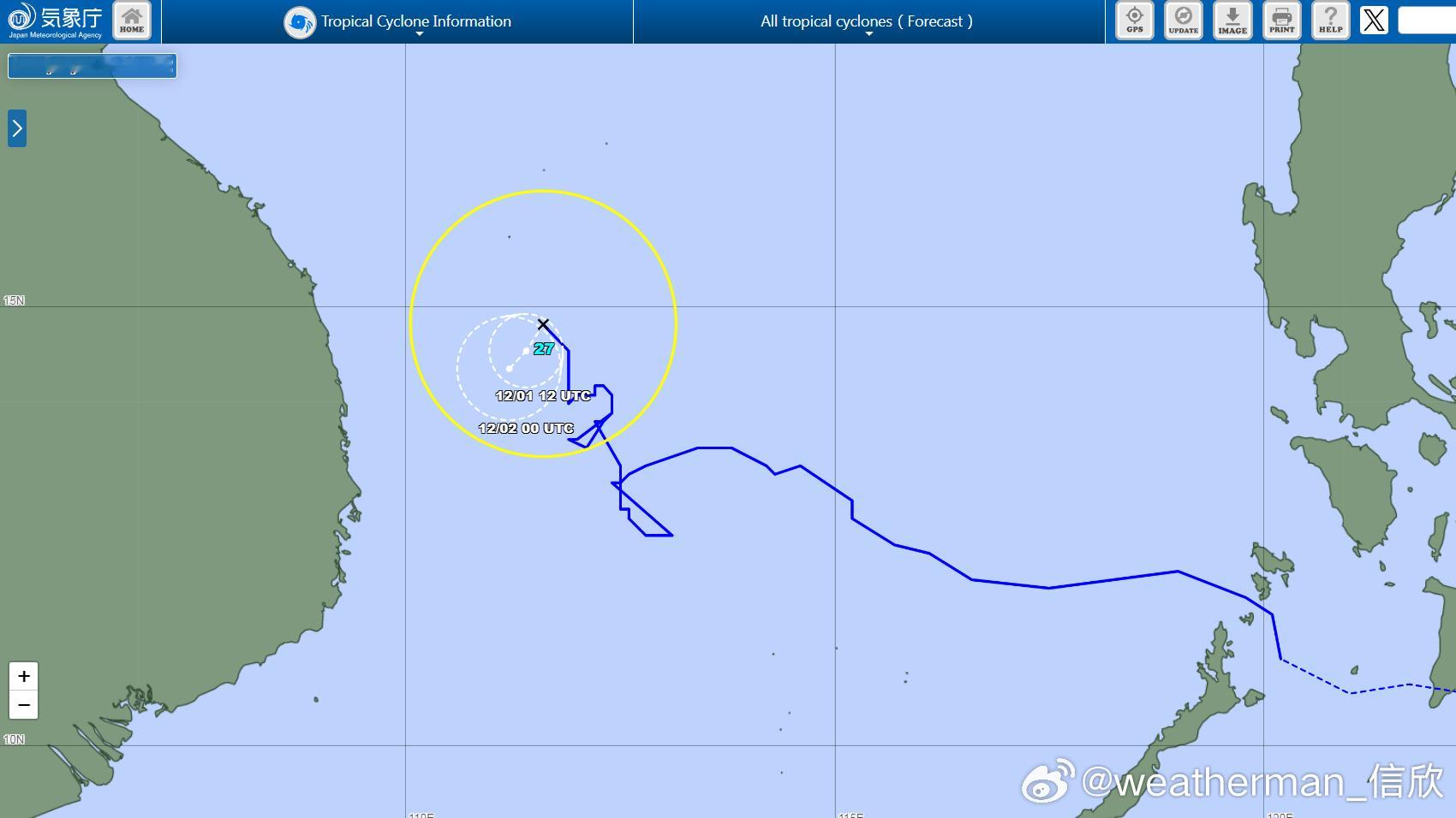 台风天琴 从今晨云图看,天琴低空的环流中心外露,对流已经明显减弱。因此天琴的生命史进入了尾声,未来会继续减弱,应该活不过明天。另外在关岛西侧还有新的扰动在发展,本周有可能还会新生台风,下周初进入南海。