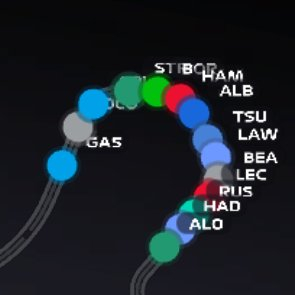 昨晚正赛中的实时车手赛道位置图是这样的F12025F1卡塔尔大奖赛