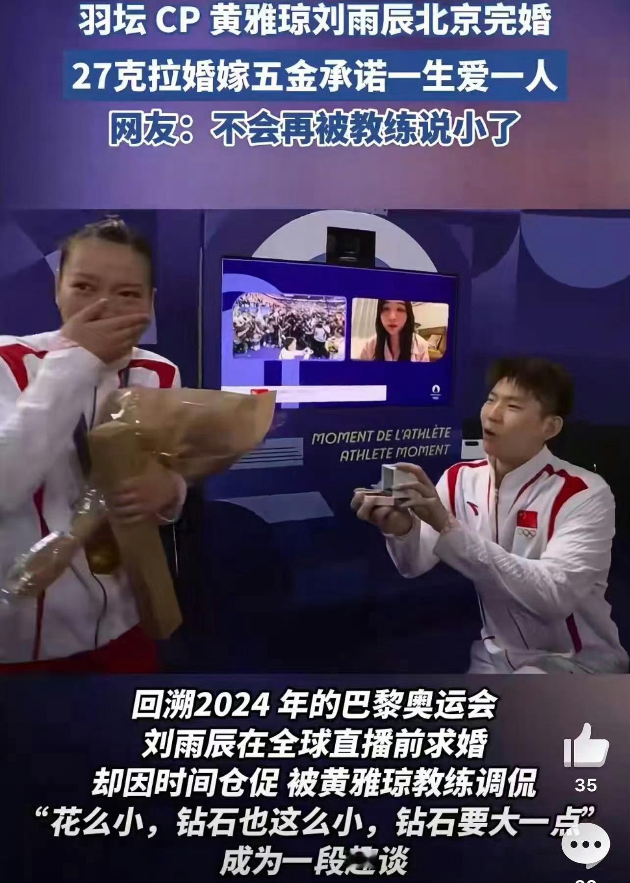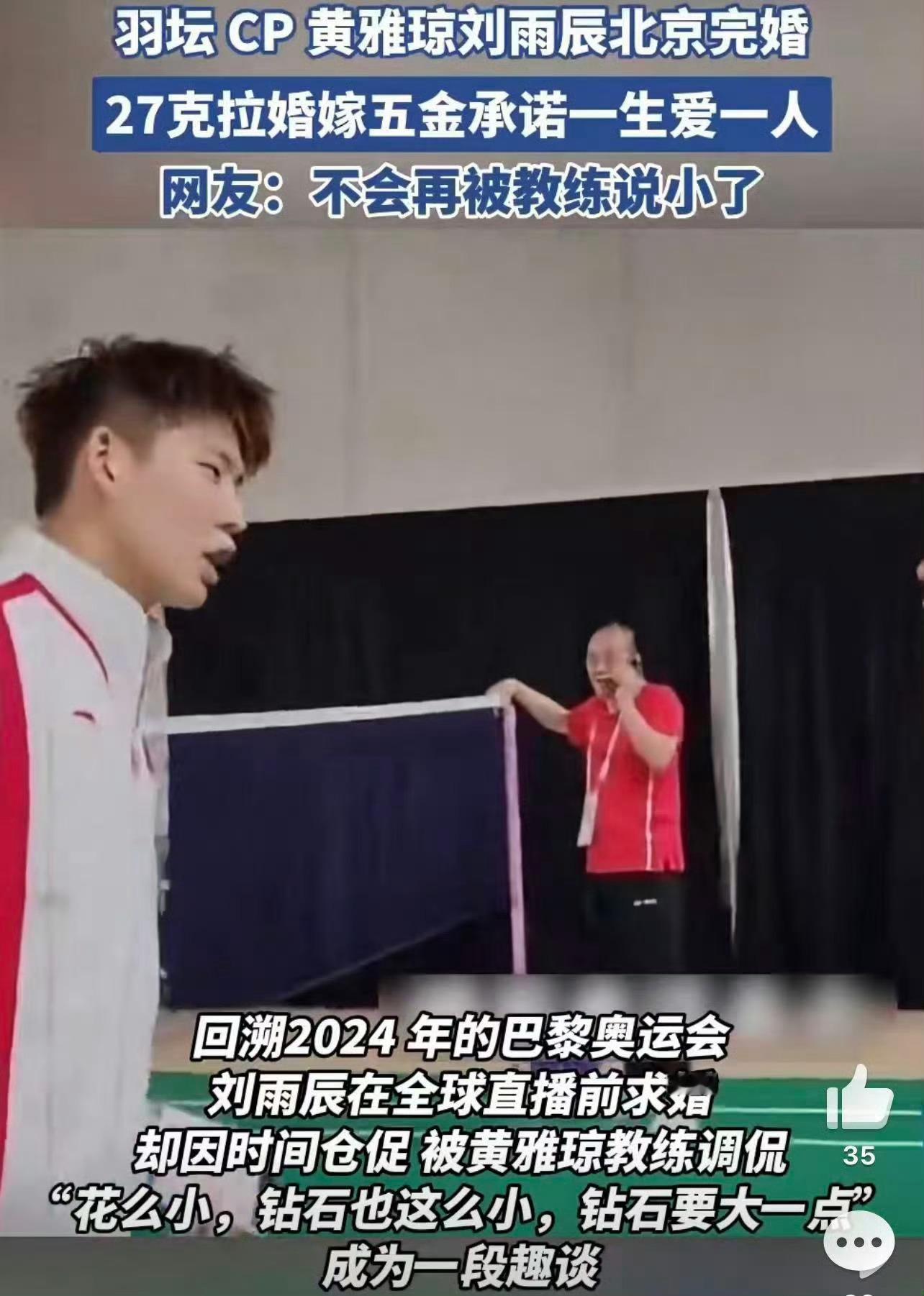 黄雅琼婚礼的钻戒不会被教练说小了 世界冠军黄雅琼刘雨辰大婚,婚嫁五金镶27克拉钻