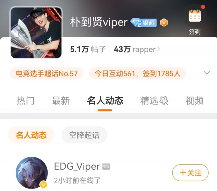 来LPL前先看看社交媒体?Viper今天登录微博账号并检视自己超话