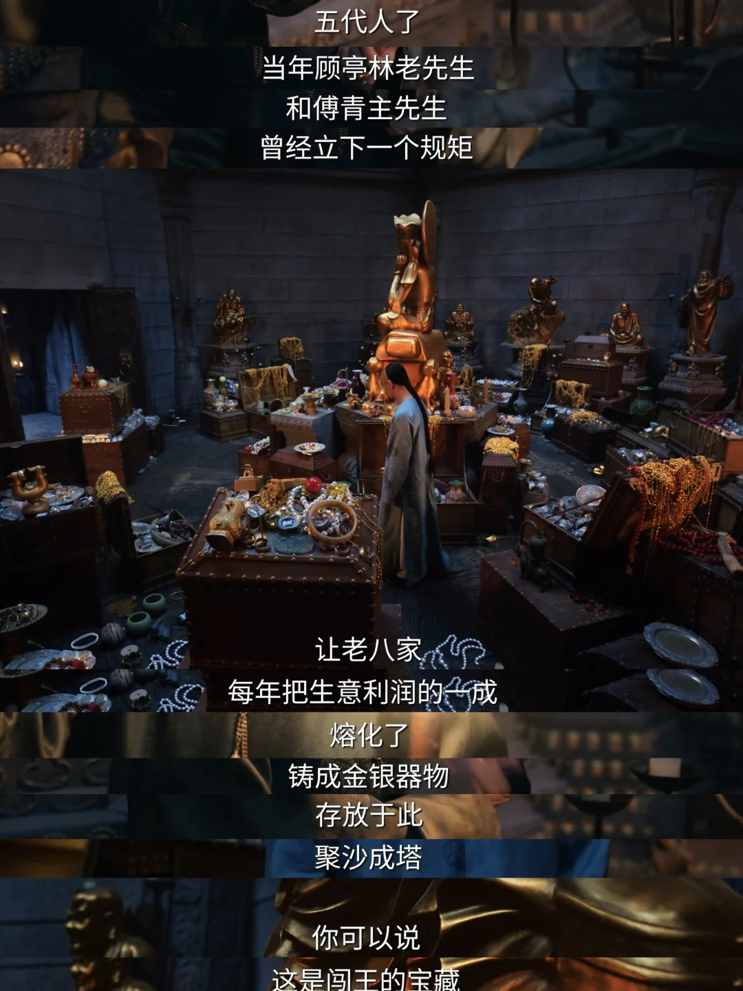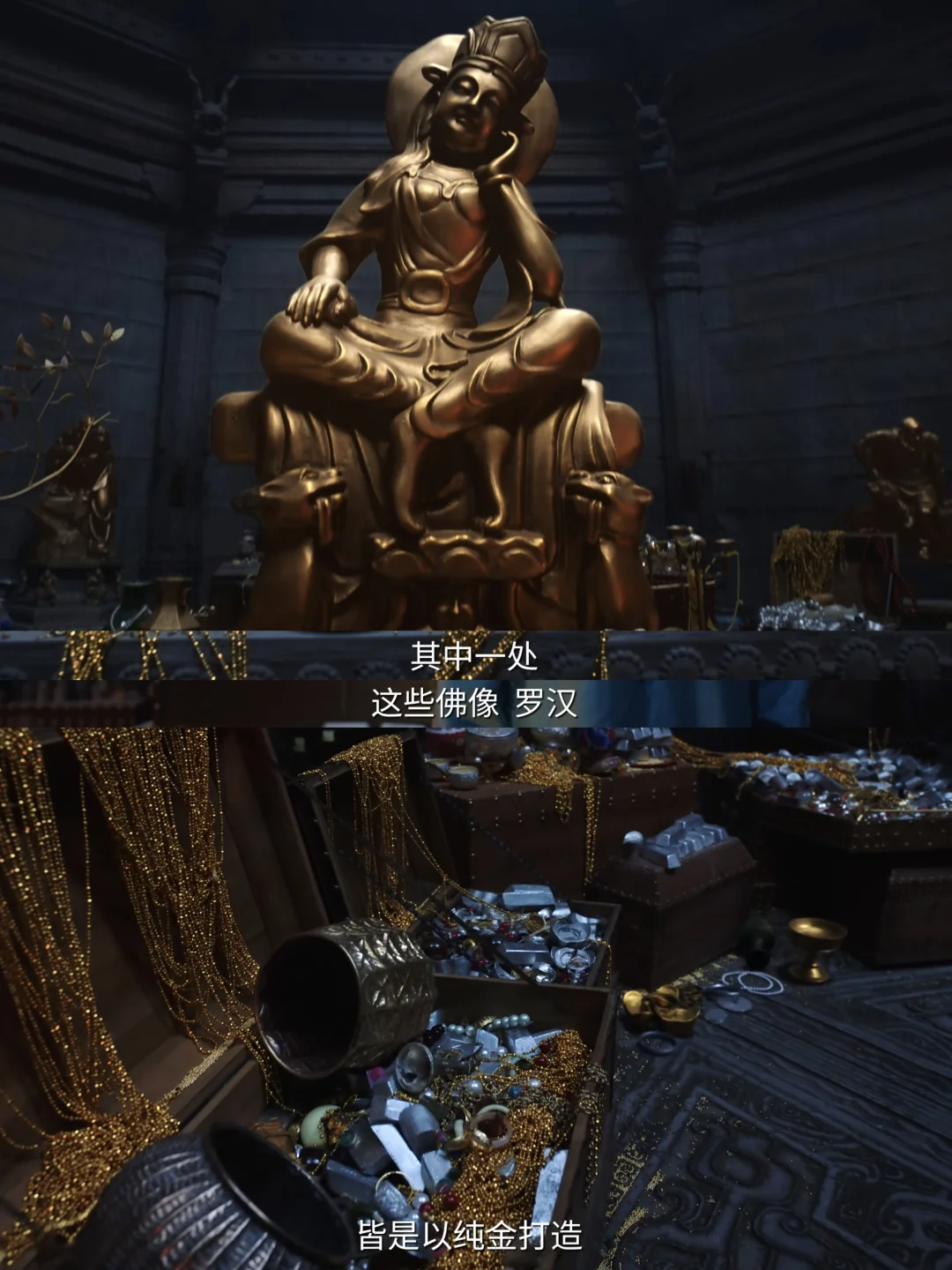 金山银山亮瞎眼,珠宝流光溢彩、佛像金光闪闪,但这和王天贵“八家之所以富得冒烟,都是背靠闯王宝藏的金山银山”的理解不一样