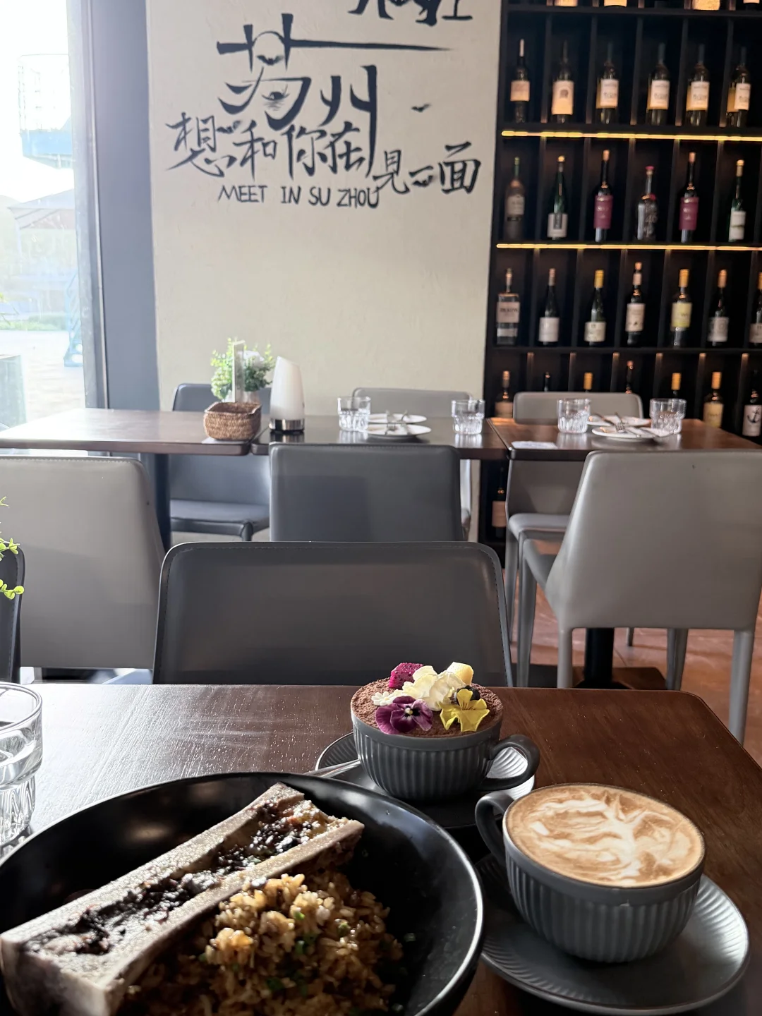 坐标时代广场的爱杯餐厅 已经有了很浓郁的圣诞氛围🎄 🌟提拉米苏非常好吃 上面的鲜花布置很漂亮 🌟牛骨髓饭鲜香可口可口