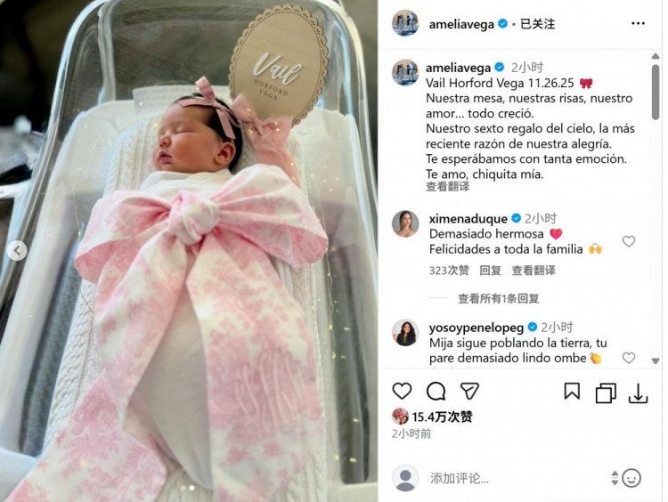 霍福德妻子阿米莉亚-维加宣布迎来第6个孩子的降生!