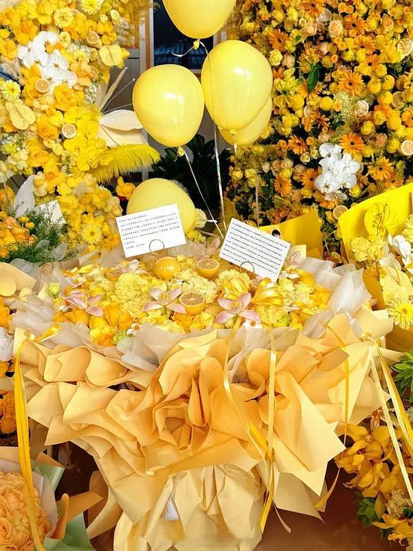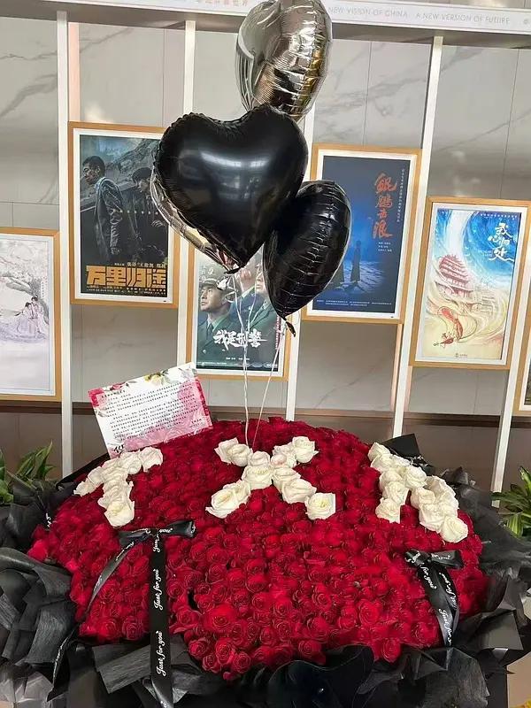 田栩宁竟然出道四周年了,粉丝在华策楼下送的花好漂亮。