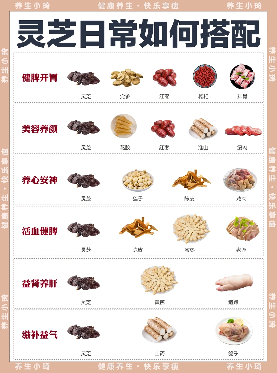 灵芝富含多种成分,例如糖蛋白、多糖等,还有钾、钙、镁、硒、铁和锌等。营养元素丰富,应用范围也很广泛,非常适合用来日常保养
