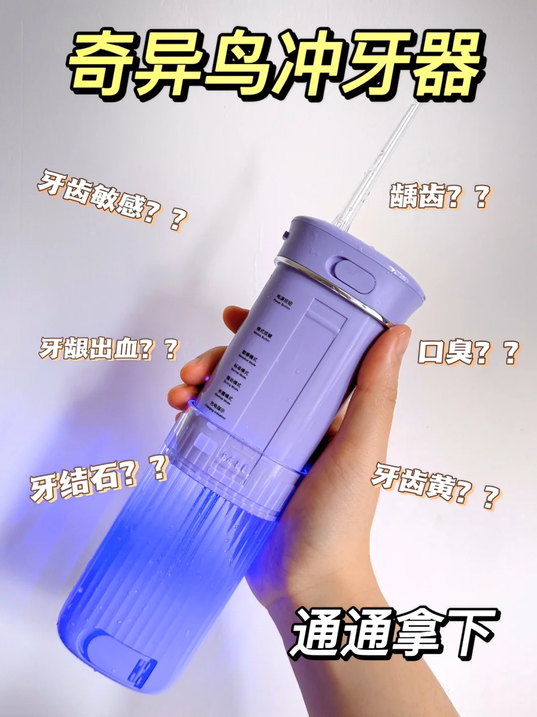 也很便携,平时吃完饭后随时都能冲掉齿缝间的食物残渣,牙缝都感觉轻松了许多。很多小伙伴会担心不知道冲牙器怎么用,奇异鸟这个就很简单,新手也能轻松搞定✅