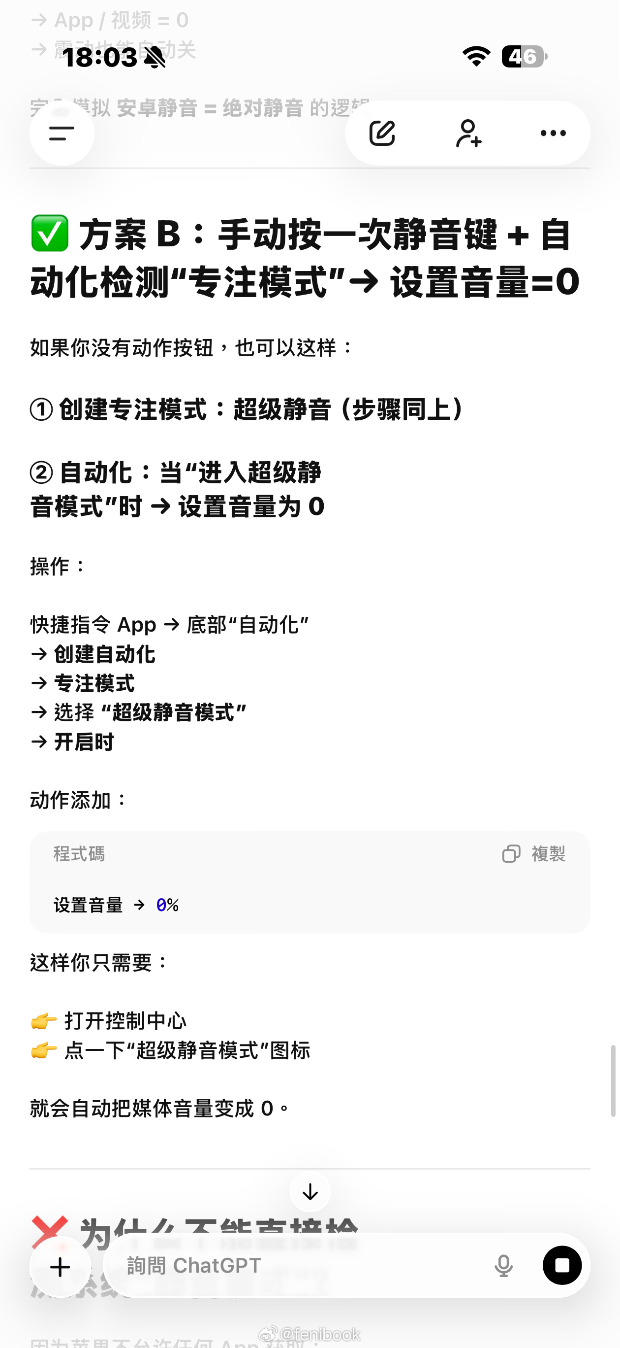 按照ChatGPT说的,研究了一下午,也没搞定iPhone的静音模式苹果真的是白