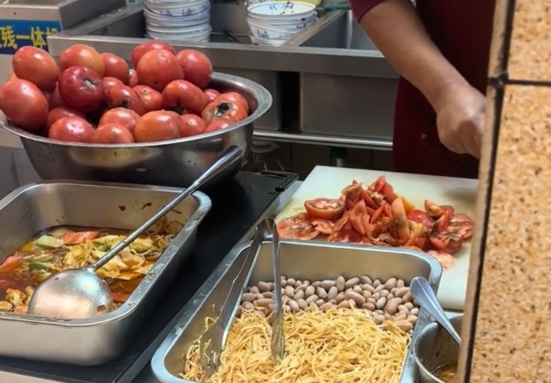 大皖新闻记者注意到,网民发布的视频中,有人正在案板上切西红柿,一旁的盆里还装着一些完整的西红柿。视频发布者称,看到厨师正在把一个个烂的西红柿切掉腐烂的地方,剩下一点点好的部分留用。视频显示,该面馆位于石家庄市新华区辖区。