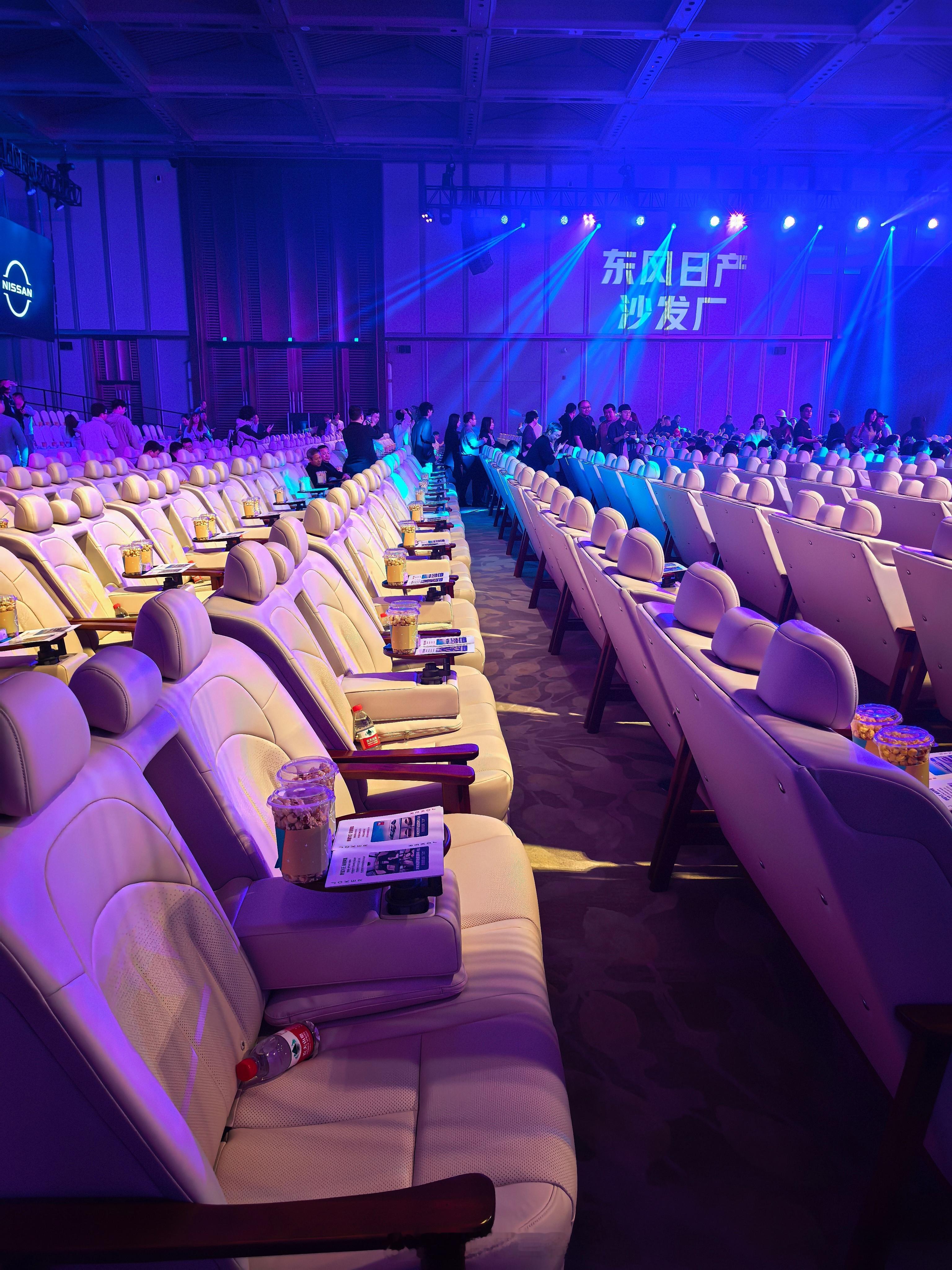 百万级后排大沙发东风日产N6想过很多种场景,日产会把今晚的发布会打造出一场“沙发”秀。没想到,他们整整奇奇的摆出来,太震撼了。现场所有观众都震惊,真的第一次见,这场面。坐在沙发上,吃着爆米花看着发布会。史上最舒服新车发布会了,没有之一!