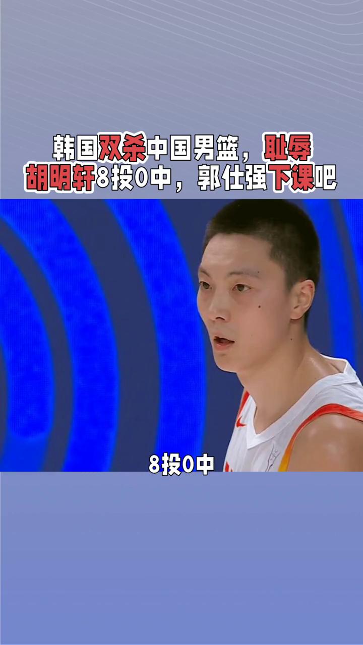 韩国双杀中国男篮,耻辱!胡明轩8投0中,郭仕强下课吧! 中国男篮客场76-90再败韩国男篮,最大分差落后32分,耻辱!本场比赛揭露三个可笑事实: ·1、胡明轩再度梦游,8投0中,难怪只能打高端局。 ·2、郭仕强,你的执教能力就是个迷。 ·3、有周琦的中国男篮必输无疑。
