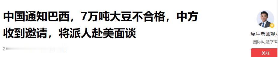 真是扶不起的阿斗。与美国同样卖大豆给中国的巴西,现在应该醒目一点才是,但是据路透社报道,巴西运载大豆的船舱内存有使用过农药的痕迹,中国发现后,禁止了这69000吨巴西大豆入境。 消息一出来,巴西帕拉纳瓜港直接乱了套,堆在那儿的200万吨大豆没人接,每天光滞港费就得掏120万美元,更糟的是,有些大豆已经开始发霉,只能低价转卖给印度,一斤比卖给中国少赚好几毛钱,算下来光这一笔就亏了近2000万美元。 可能有人觉得不就是点农药残留嘛,何必这么较真?但但凡知道这些大豆的去向,就不会说这种话。 咱们中国每年要消耗1亿多吨大豆,六成多靠进口,这些大豆要么榨成油端上餐桌,要么做成豆制品走进千家万户,关系到十几亿人的饮食安全,别说有农药残留痕迹,就算是抽检指标稍微超标,中国也不可能睁一只眼闭一只眼。 早年间海南豇豆就因为检出高毒农药水胺硫磷,直接被多个城市禁售,当地农民亏得血本无归,台湾地区的柑橘也因为农药残留超标被暂停输入大陆,欧洲的“毒鸡蛋”事件一出,中国更是直接严防死守,不让一粒有问题的鸡蛋进国门,连这些前车之鉴都不看,巴西这心也太大了。 最可笑的是,这69000吨大豆被拒只是个开始,巴西帕拉纳瓜港直接乱成了一锅粥,200万吨大豆堆在港口没人接盘,每天光滞港费就得砸进去120万美元,眼瞅着大豆开始发霉,只能捏着鼻子低价转卖给印度。 别以为印度能帮巴西挽回损失,印度人既不爱吃豆腐也不常吃大豆油,买这些大豆纯粹是捡便宜,一斤比卖给中国少赚好几毛钱,光这一笔就亏了近2000万美元,这亏的可都是真金白银,说白了就是自己作的。 巴西心里打的小算盘其实不难猜,觉得中美贸易摩擦下,中国没得选,只能买它的大豆,所以今年还敢把大豆价格涨了近80%,甚至中方企业暂停180万吨订单后,巴西还想着搞反倾销调查报复,属实是拎不清。 它也不看看,全球能吃下这么多大豆的只有中国,印度那点需求根本填不上巴西的产能缺口。 而中国早就留了后手——阿根廷、乌拉圭的大豆产能稳得很,俄罗斯的冬季大豆也在洽谈合作,真 要是巴西一直在品质上“掺水”,中国换个供应商也就是一句话的事。 毕竟生意场上最讲实在,中国给了巴西别人给不了的市场,不是因为情面,而是看中它的产能和性价比。 结果巴西倒好,不把精力放在把控农药使用、提升大豆品质上,反而想着靠坐地起价、糊弄过关赚钱,这不是明摆着把一手好牌打烂吗? 之前黄河挖泥沙的事还说明白了,光靠蛮干没用,得找对路子,巴西现在就是没找对自己的位置,以为靠着中国的需求就能高枕无忧,却忘了能端上中国餐桌的,从来都是靠品质说话,不是靠情面给机会。 这次69000吨大豆被拒、200万吨大豆滞销,对巴西来说其实是个警醒,要是还不反省,继续在品质上打折扣,迟早会被中国市场踢出去。 毕竟中国的大豆进口格局早就不是非巴西不可,阿根廷的大豆等着进场,俄罗斯的大豆也摩拳擦掌。 巴西再这么“摆烂”,最后只能看着自己的大豆烂在港口,或者贱卖给印度这种捡漏的买家,到时候可别怪中国太较真,只能怪自己是扶不起的阿斗。