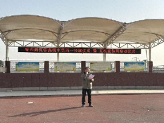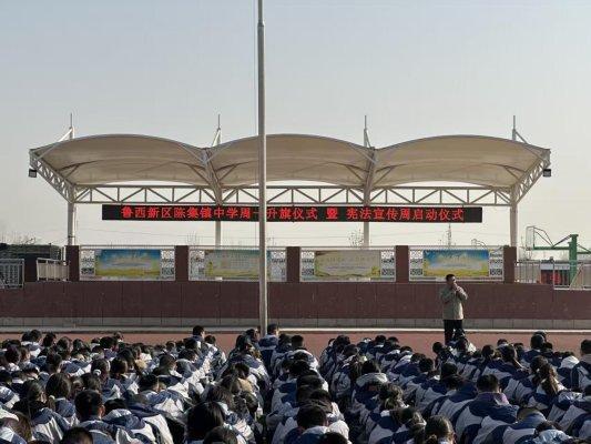 鲁网12月1日讯12月1日上午,菏泽鲁西新区陈集镇中学举行周一升旗仪式,并同步启动了以“宪法伴我成长,法治护我前行”为主题的宪法宣传周活动。全体师生齐聚校园,共同参与了此次庄严而富有教育意义的仪式。