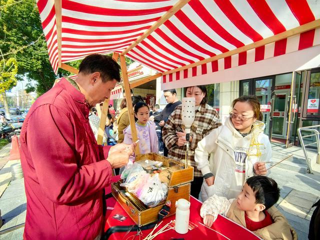 活动在阵阵甜香与惊叹声中拉开帷幕。在“非遗传承”区域,捏面人的艺人十指翻飞,彩色的面团瞬间化作栩栩如生的孙悟空、猪八戒;画糖画的师傅以勺为笔,以糖为墨,寥寥数笔,一只只灵动的小兔子、威武的龙便跃然板上;剪影艺人则凭借一把剪刀一张纸,精准地捕捉居民们的侧影轮廓,引得大家连连称奇。一旁的冰糖葫芦和棉花糖摊位前更是排起了长队,晶莹剔透的糖葫芦与蓬松如云的棉花糖,不仅甜在嘴里,更暖在心里,唤起了许多人的童年记忆。