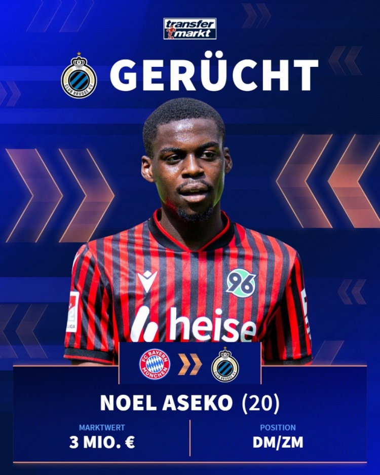 直播吧12月1日讯《转会市场》消息,拜仁外租到德乙汉诺威96的20岁后腰诺埃尔·阿塞科已经吸引了多家俱乐部关注。