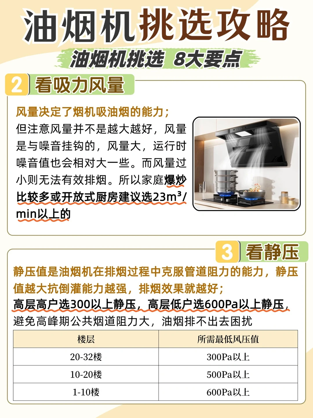 家庭爆炒比较多或开放式厨房建议选23m³/min以上的,吸油烟效率更高