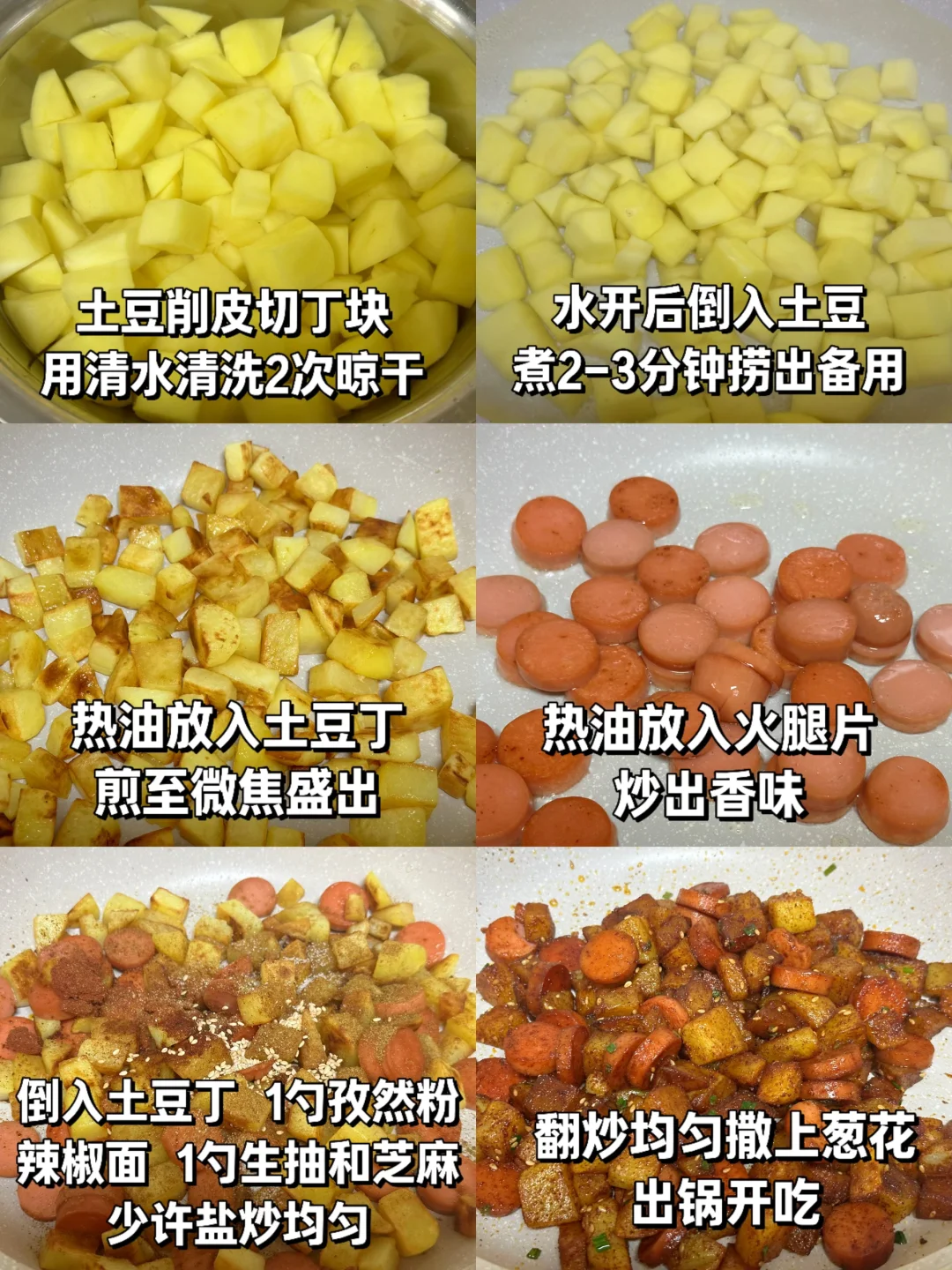 姐妹们,这个孜然火腿土豆丁一上桌就炫到我了,巨好吃!外层酥脆,内里软糯,孜然味浓郁,每一口下去都焦香软糯,香辣过瘾,咸香微辣,一上桌就光盘!而且做法简单,家人们赶紧来试试吧~