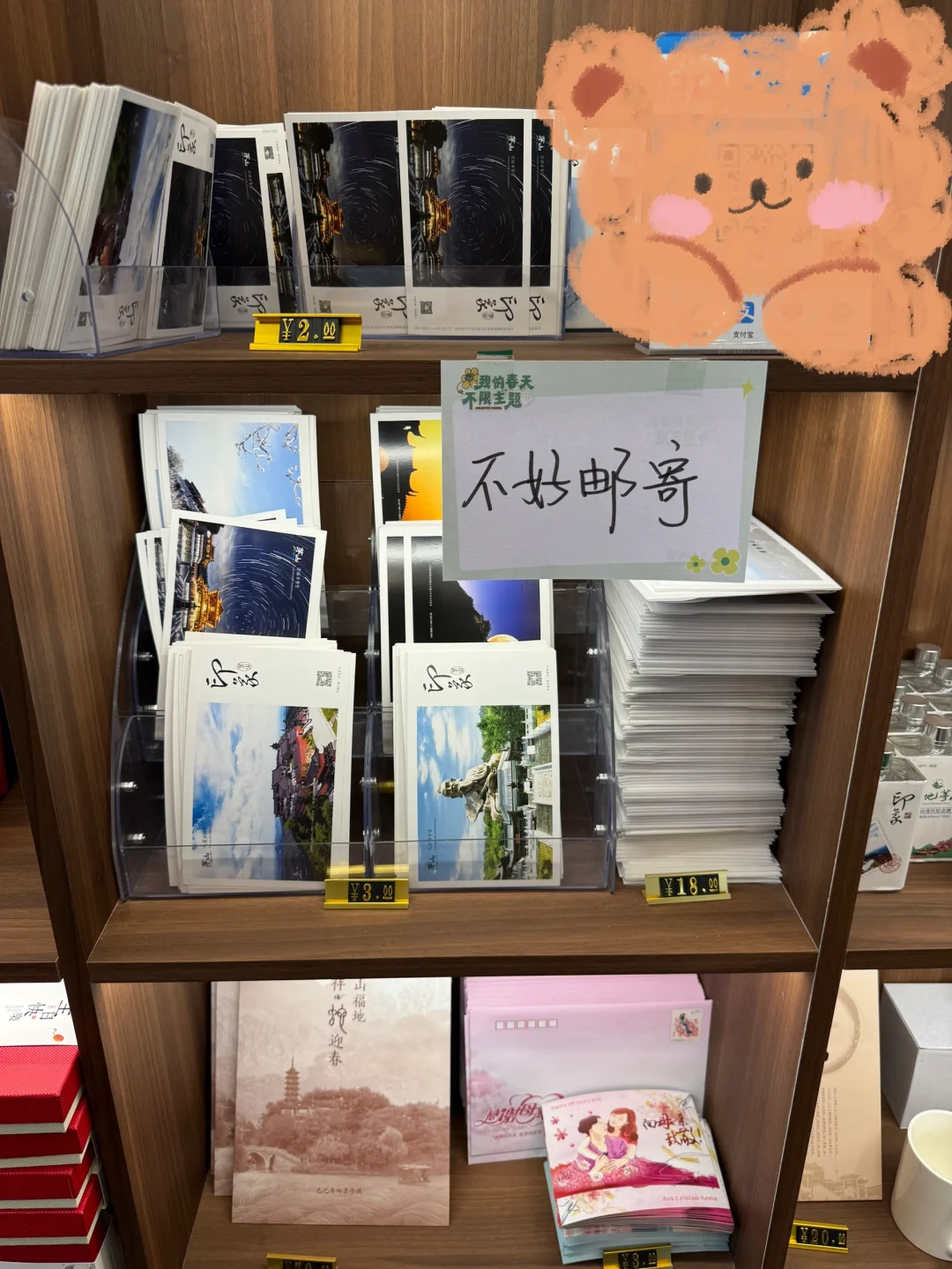 整个茅山景区(山上)是没有能寄明信片的地方!‘咖啡邮局’也不能寄明信片,甚至专门贴了个‘不好邮寄’……但实际并非如此,往下看!