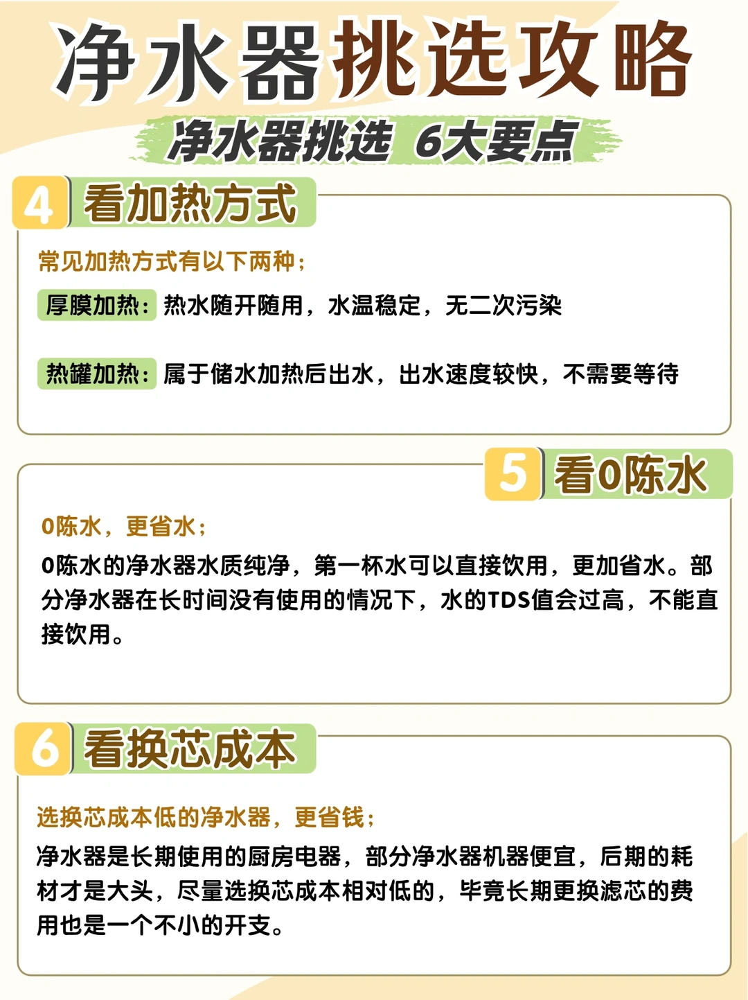 6⃣换芯成 本:优先选换芯成 本低的净水器