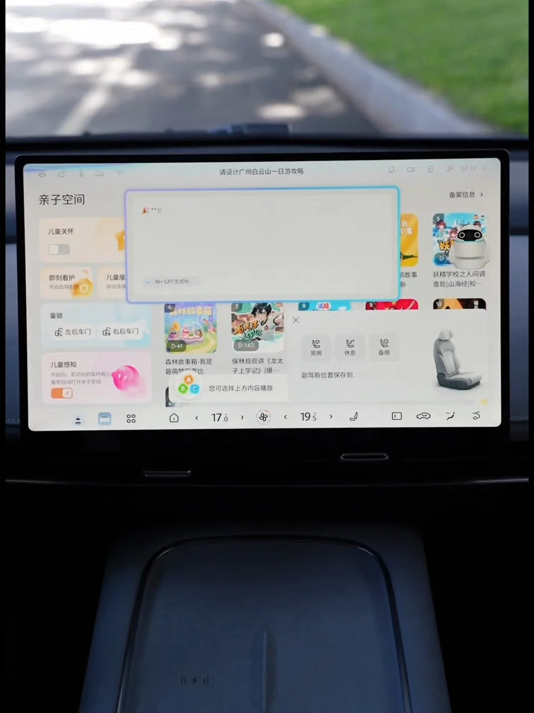 坐在软fufu的座椅,[集美R]女儿很喜欢的“大彩电”的动画,上车就喊“小尼”打开,音响效果也是棒棒哒。🌿这次出游攻略还得是“小尼”,[点赞R]喊一句话它就能拯救不做攻略出门的人,🌲AI真的改变生活。