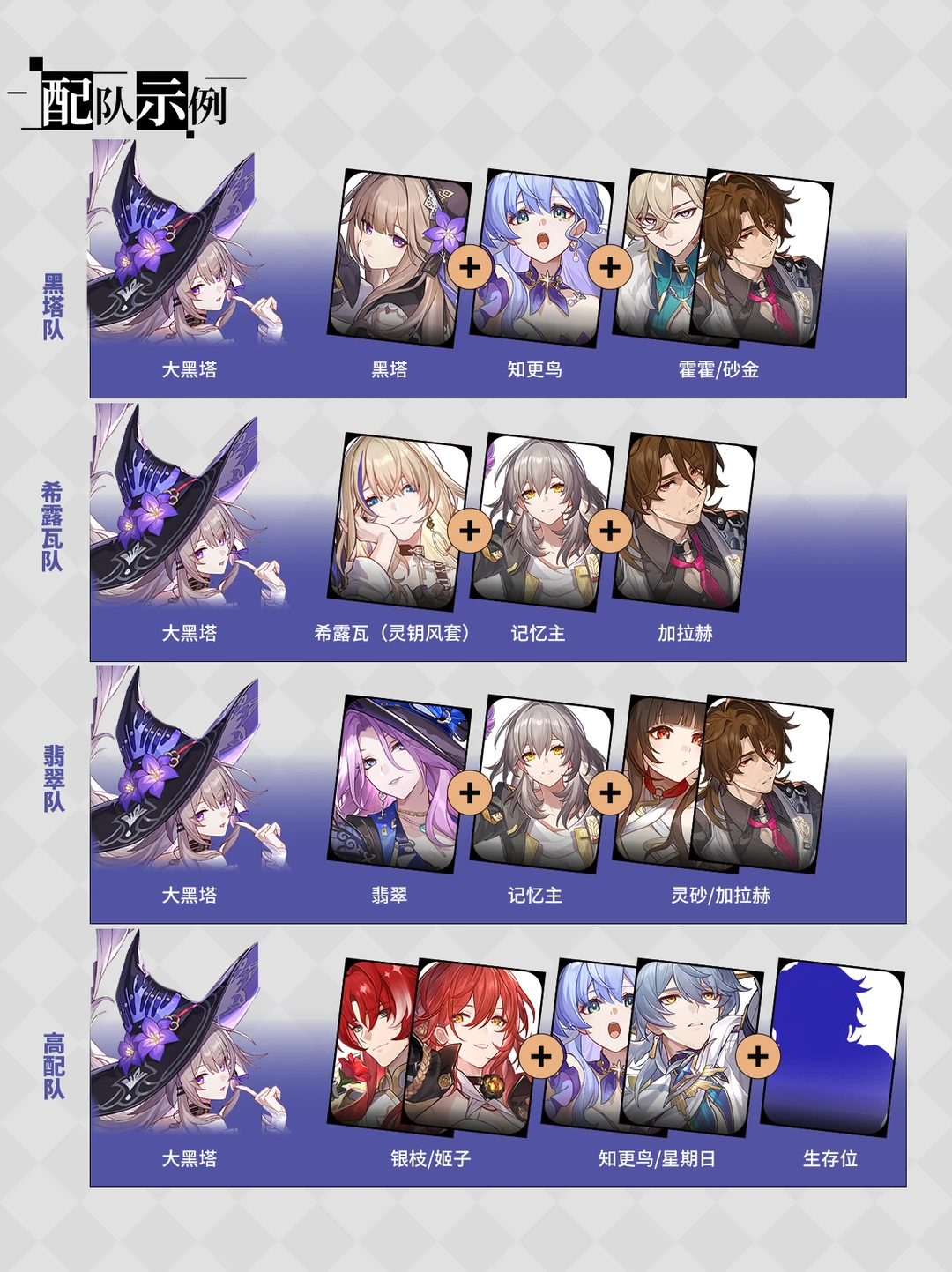 鼹鼠君来喽~ ≖‿≖✧ ▌大黑塔材料 | 行迹 | 光锥 | 遗器 | 配队|细节 ▌角色简介: 大黑塔是一名为智识强度正名,具有很强环境适应力的令使角色。配队方面,需要智识队友,携带小黑塔的表现同样强力!强烈推荐缺少主C的玩家抽取! *该内容来自创作体验服,以实际上线为准 -------- 「黑塔女士举世无双!黑塔女士聪明绝顶!黑塔女士沉鱼落雁!」