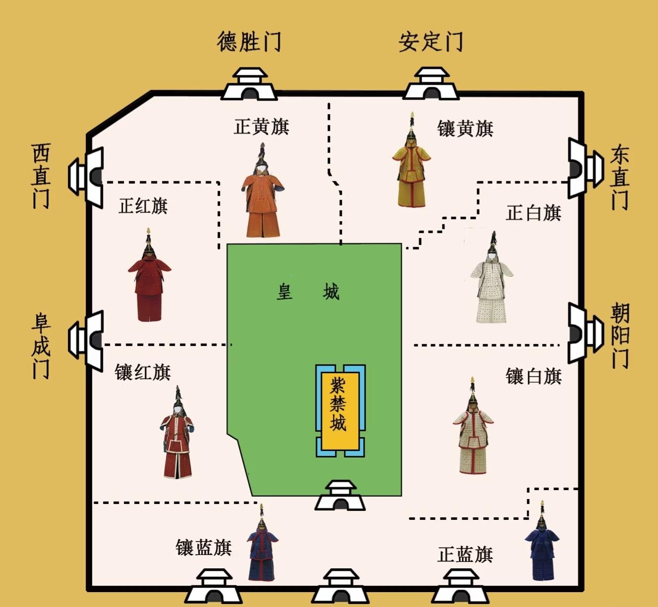 满汉分居制度。清初推行满汉分城居住政策,末期逐渐松动。顺治五年北京实行"旗民分治",外城住汉官、汉民,内城为八旗官兵及眷属;多地设有满城,禁止汉人进入。清末戊戌变法后汉人移居内城增加,庚子事变后彻底打破(这个时候可能会理解八国联军攻城奇怪的一幕)。