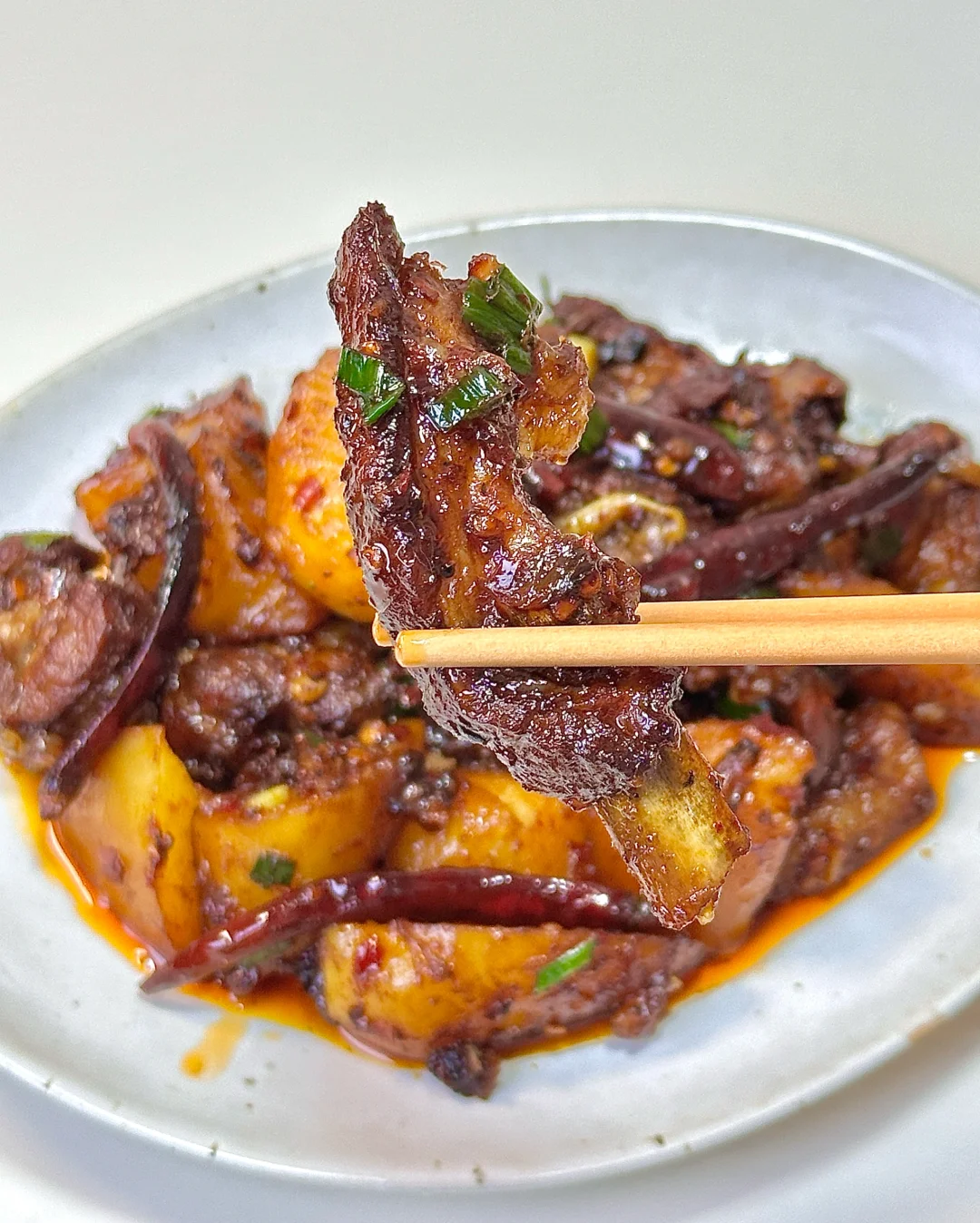 粉糯的土豆🥔搭配烧的软烂的肋排 太太太好吃了吧。这次把汤汁收干了 做的干香口很好吃😋 上桌秒光[大笑R] 里面土豆也超入味~
