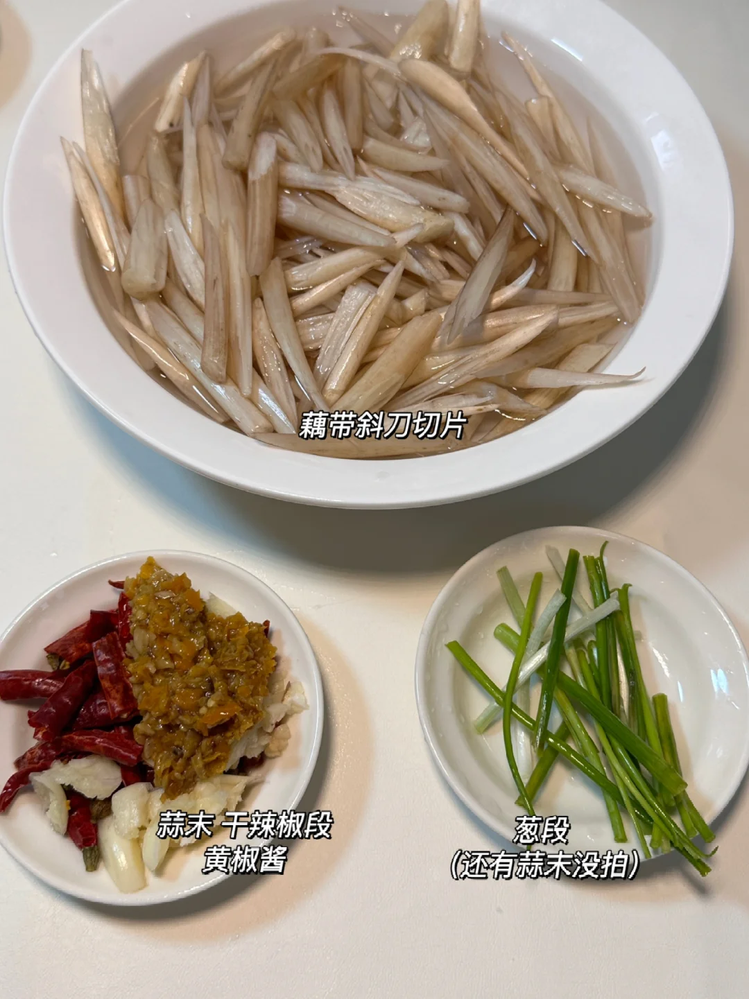 ✨食材:藕带 干辣椒 蒜末 黄椒酱 葱段