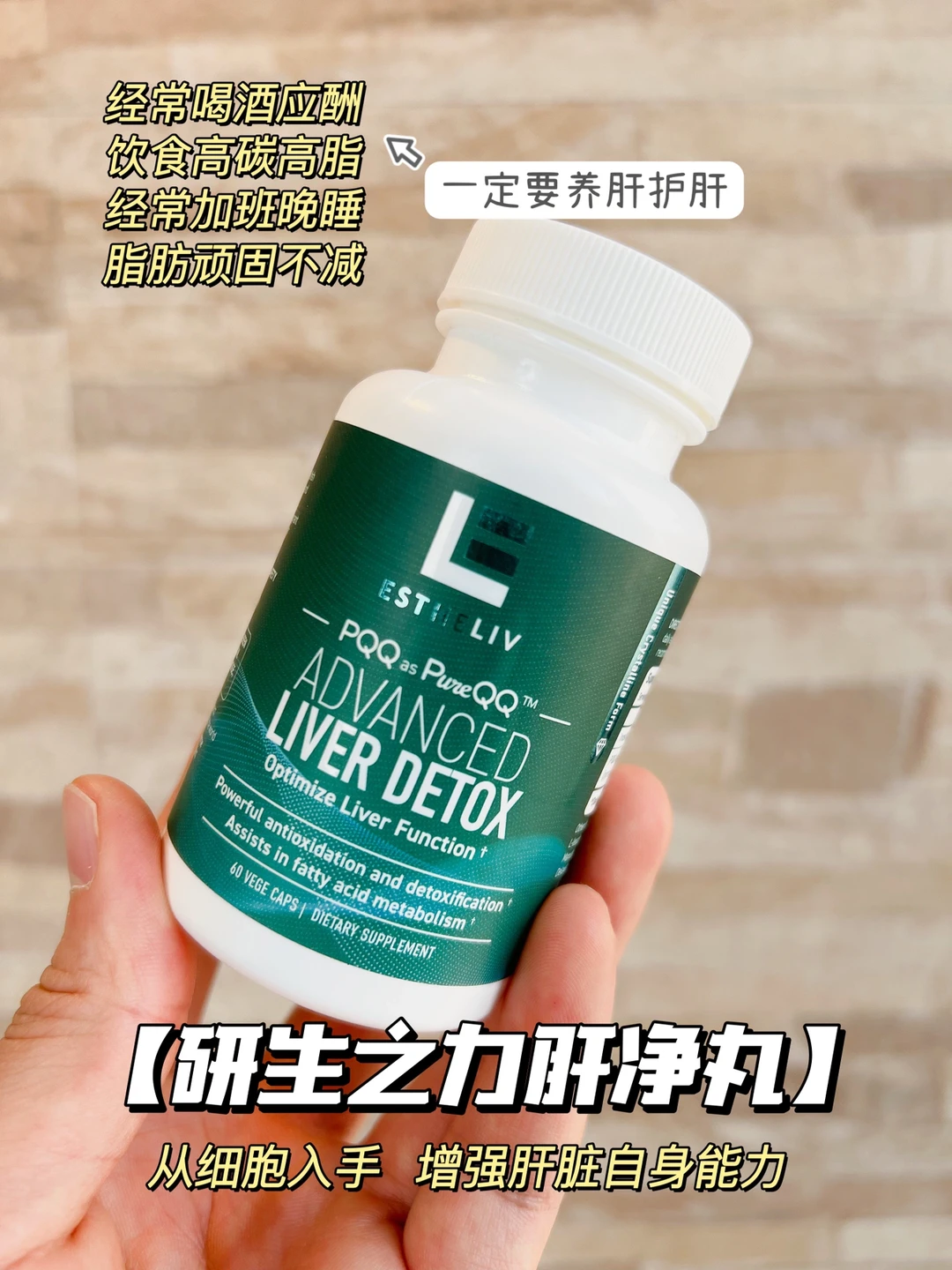 所以除了在日常生活中注意多喝水和多摄入蛋白质,我也会仔细挑选含有PQQ和肌醇这两种成分的护肝内服,最后选择的是研生之力肝净丸,里面就有这两种细胞级辅酶成分。