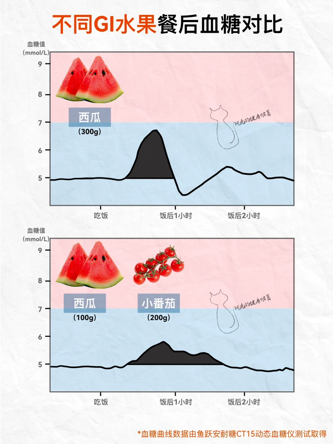 ❸西瓜(高GI水果)VS西瓜+小番茄(低GI水果)