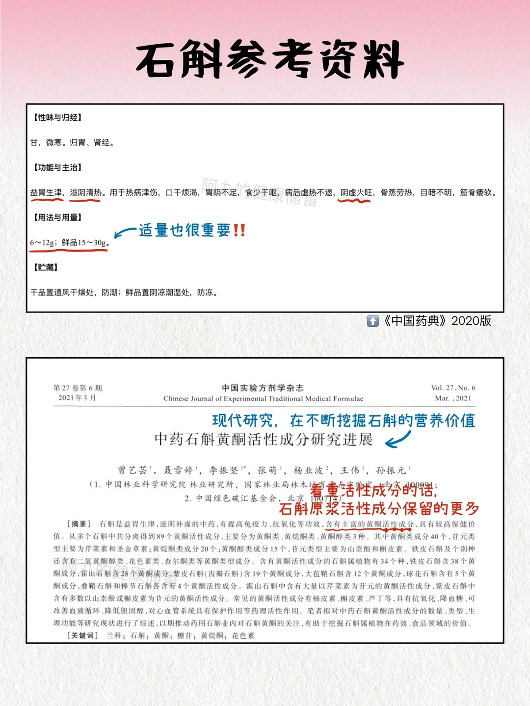 ➡️干石斛我们见的比较多,易保存,一年四季都能吃到,平常养生壶、煲汤都适合!(但活性成分相对少一些)