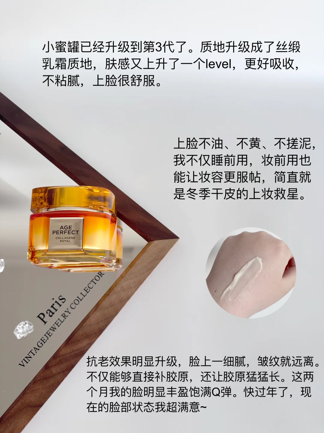 面霜我只有一瓶——欧莱雅小蜜罐。小蜜罐已经升级到第3代了。质地升级成了丝缎乳霜质地,肤感又上升了一个level,更好吸收,上脸很舒服。
