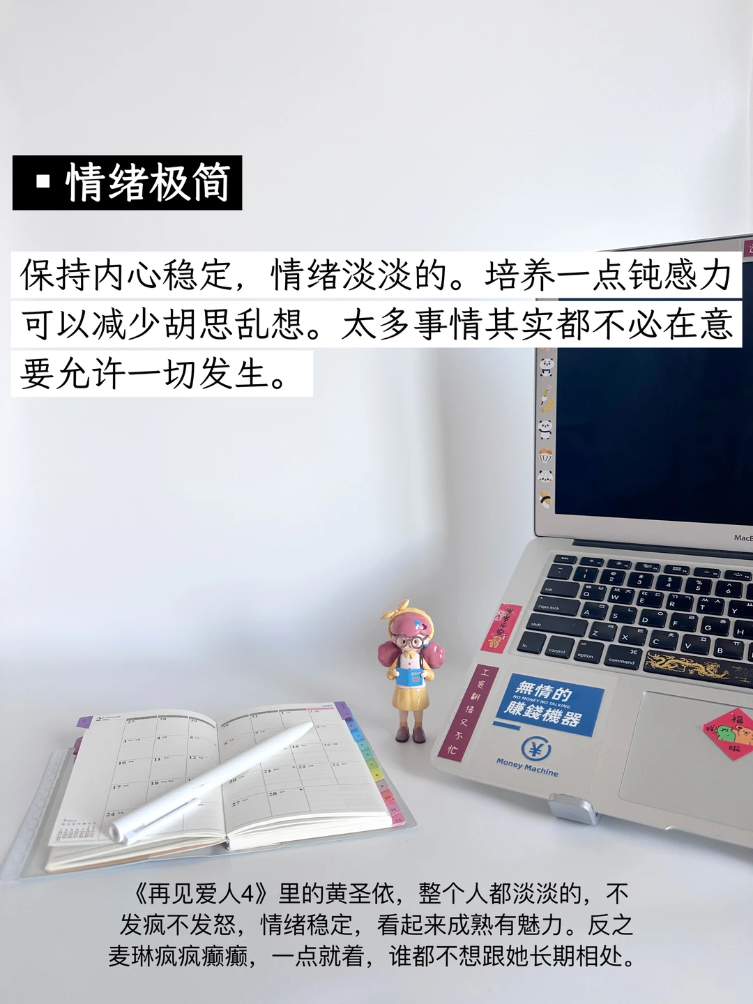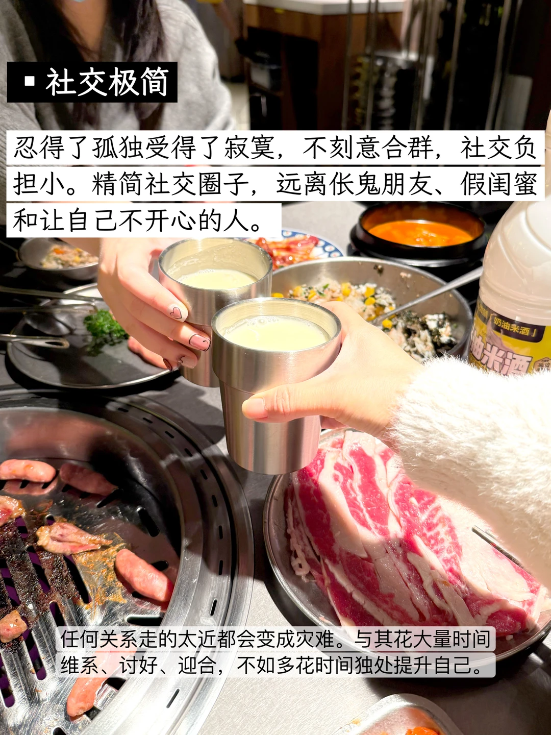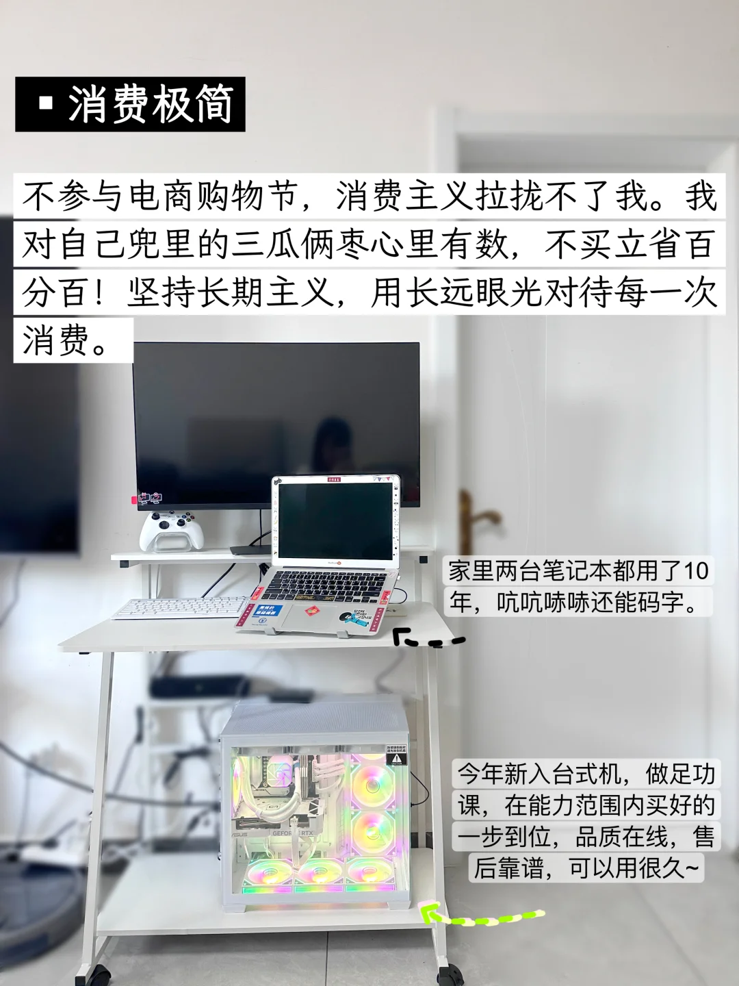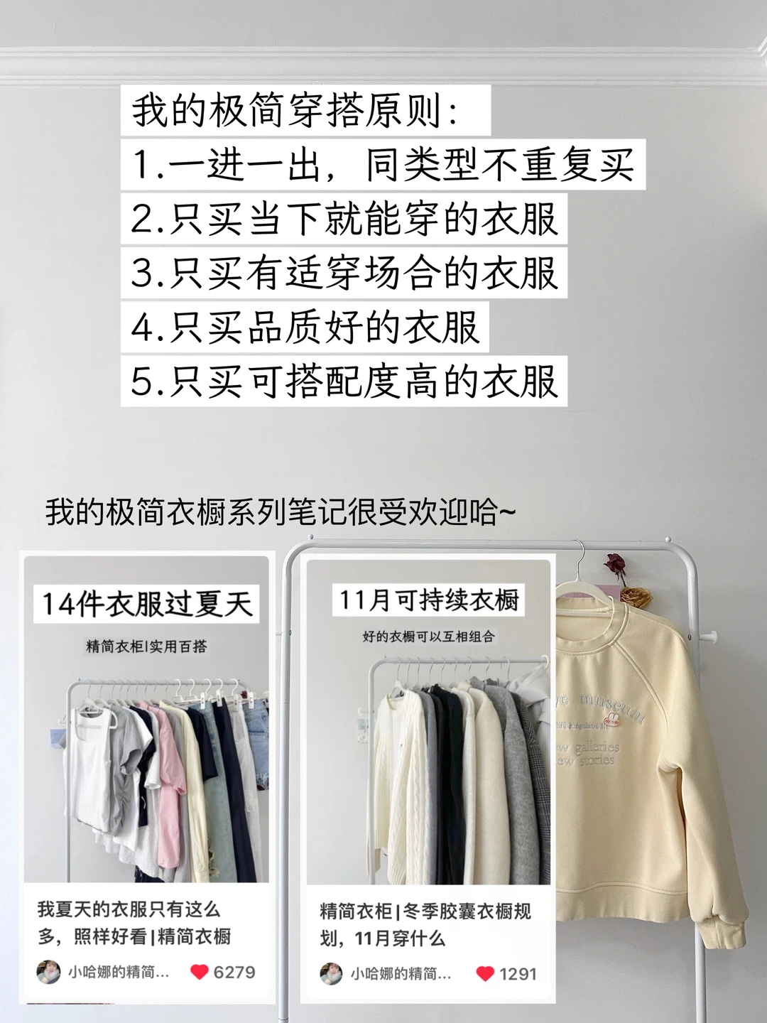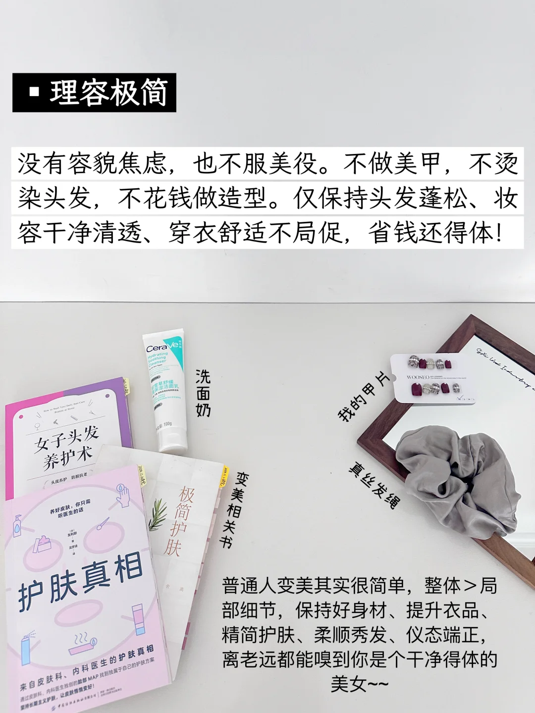 我开始极简生活已经3年啦,载极简主义的影响下,我开始精简护肤、理容极简、饮食极简、信息极简、消费极简、服装极简、社交极简、情绪极简、妆容极简、娱乐极简、表达极简,在这个过程中,我不再被消费主义裹挟,越来越清楚自己想要什么。不但花销减少了,而且生活体验并没有下降,没有明显感觉到委屈自己,只是在专注生活的过程中压缩了生活成本而已。