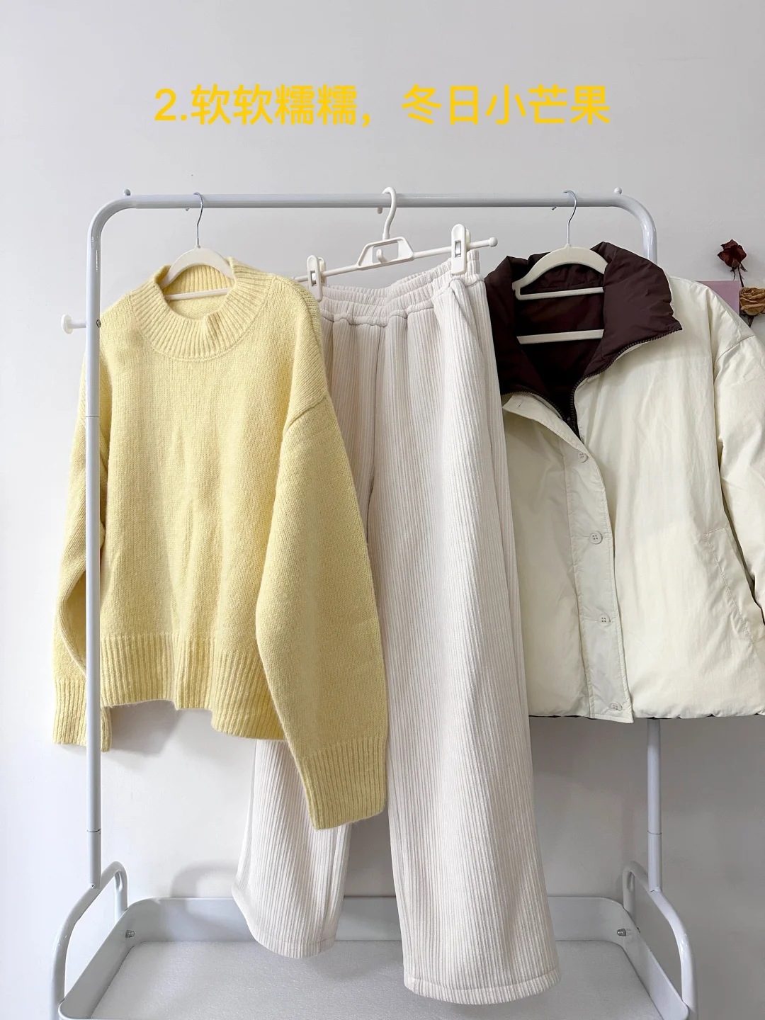 3.淡黄毛衣+白色阔腿裤:不沉闷
