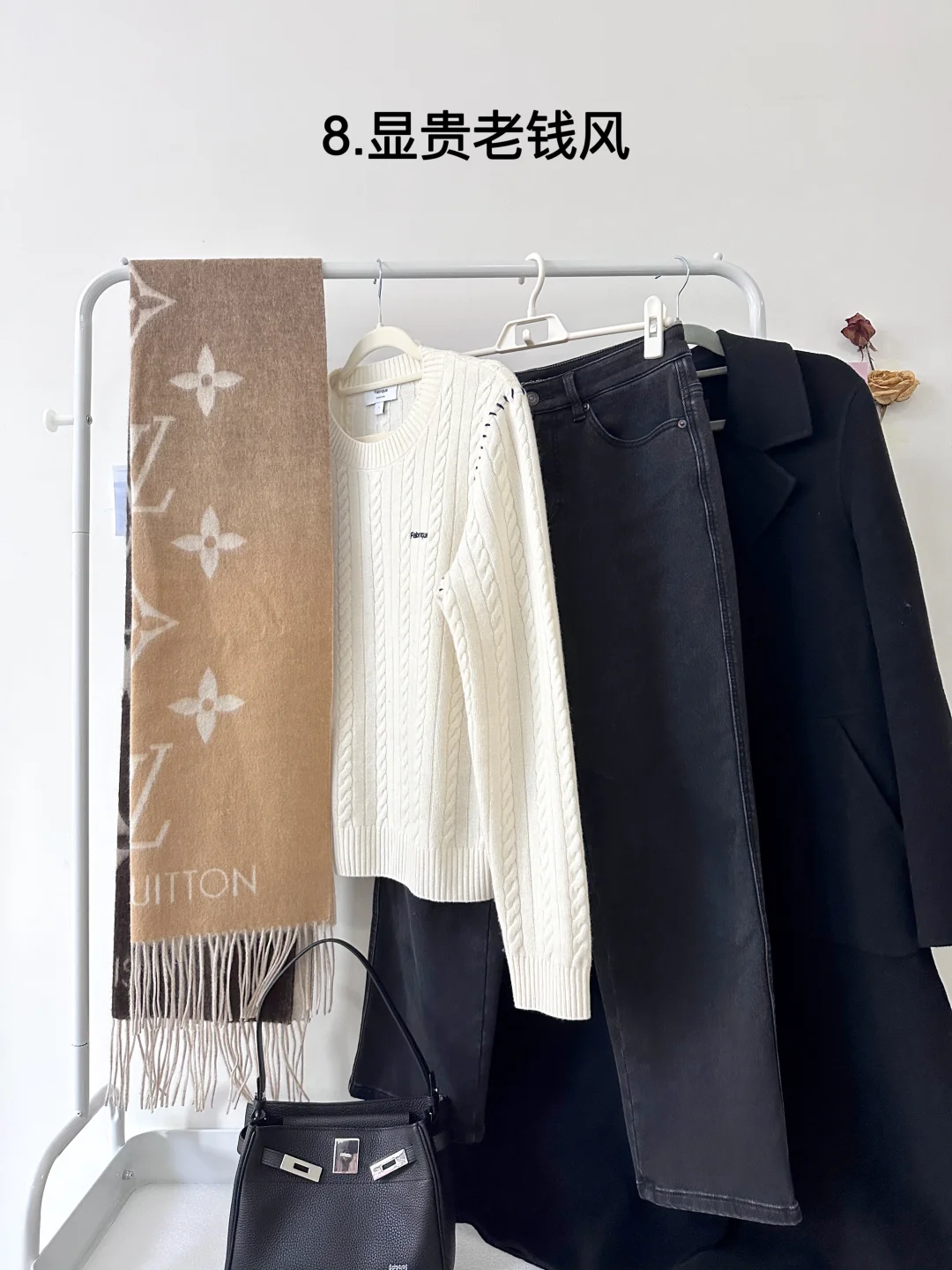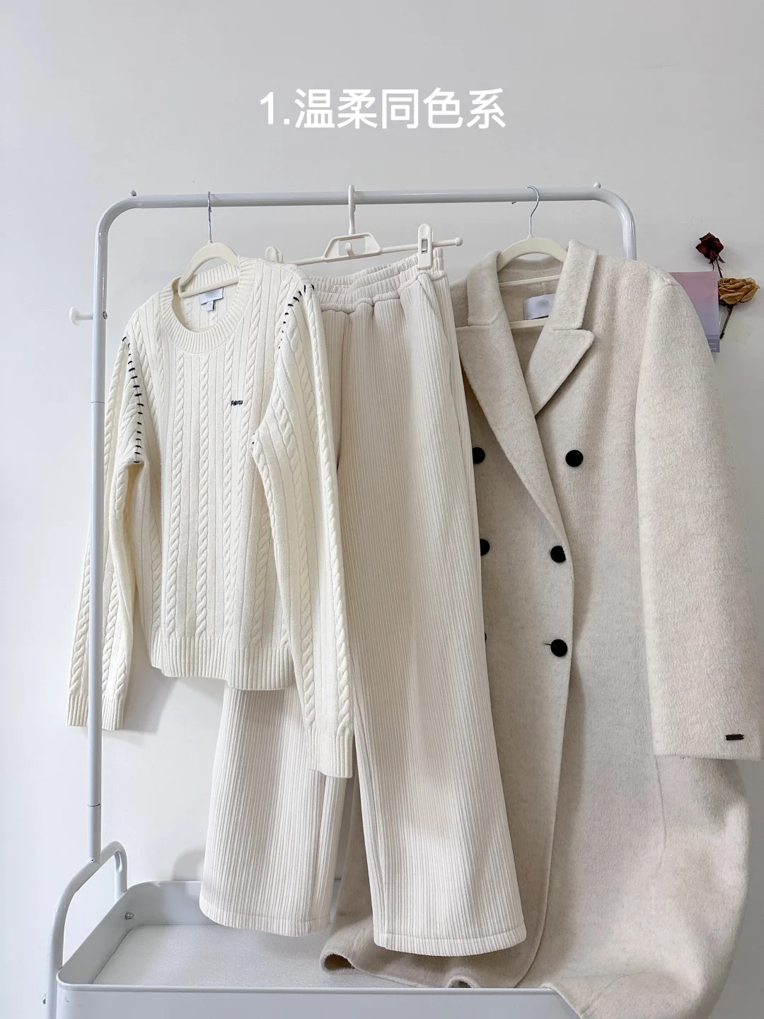 2.白色毛衣+白色阔腿裤:里面颜色一致更显瘦
