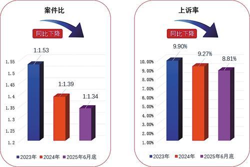 大量案件在基层和一审化解,审执质效大幅提升,从2022年的中下游水平,到2023年进入中上游,2024年跃居全省第一方阵,2025年上半年继续在第一方阵中逐项巩固。