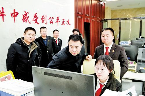 张家口中院党组书记、院长李哲(右三)调研立案工作。