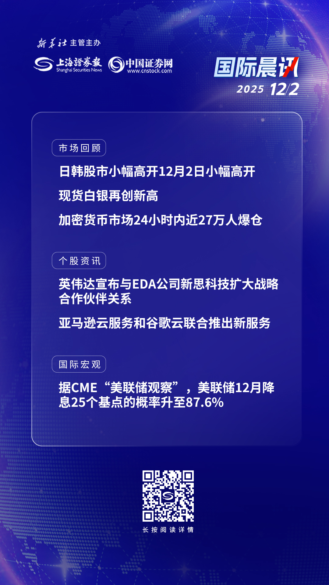 12月2日国际晨讯丨白银再创新高 加密货币市场24小时内近27万人爆仓