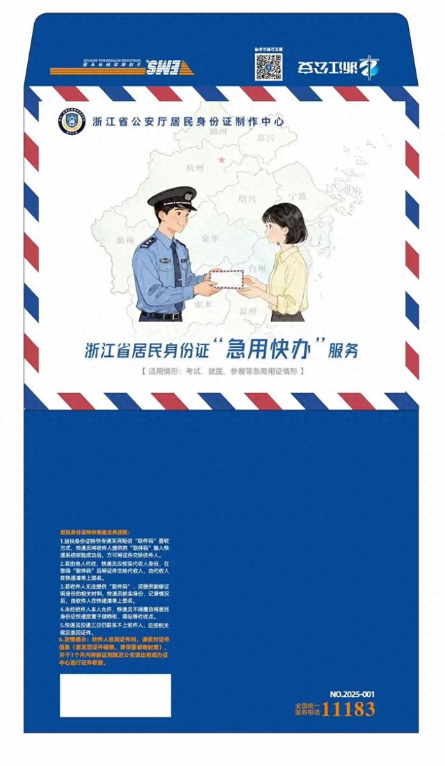 服务正式上线后的专属封(如图),将与普通身份证邮封相应区别,加快处理。