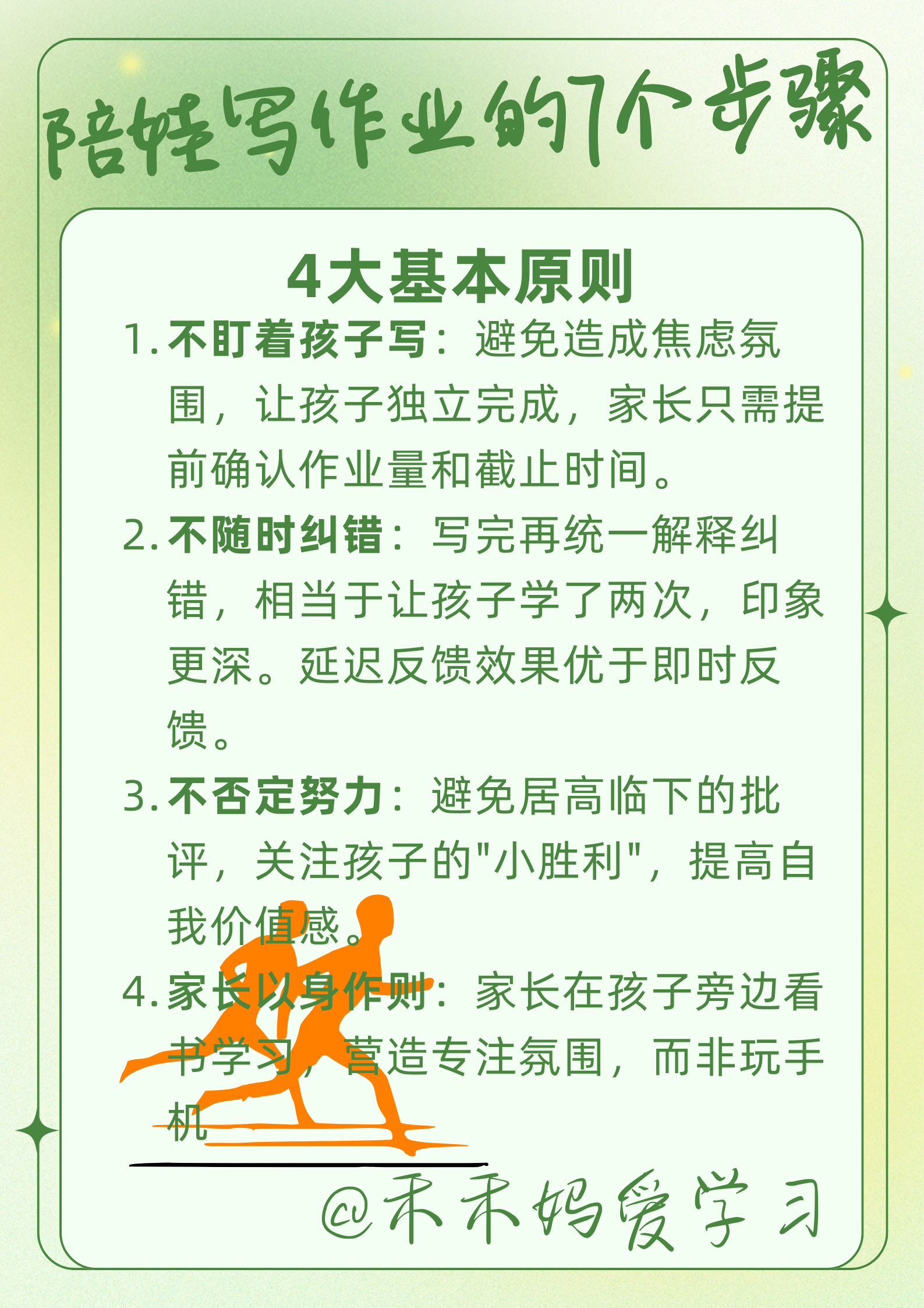 认识很多家长,为了图省事,孩子刚上小学一年级就把他放在托管班,看似很省事,实际上却为孩子未来学习习惯的培养挖了个大坑。 认识一位在重点小学担任二十年的老师,她说:辅导作业的底层逻辑不是为了监督和检查,而是随时关注孩子的心理。 把孩子放在托管班,家长确实能省心不少,但多数托管班老师辅导孩子写作业只能起到一个“监督者”的作用,然而,父母如果亲身去做这件事,就可以将这个角色转变为“陪伴者”和“引导者”,最终培养孩子独立自主的学习习惯。 目前公认最有效陪孩子写作业的7个步骤和4个原则分享给各位家长,建议家有中小学生的,尤其是低年级小学生的父母认真看一看,用这套方法坚持一个月,或许孩子就能给你带来意外惊喜。 #家庭教育# #育儿知识# #小学教育#