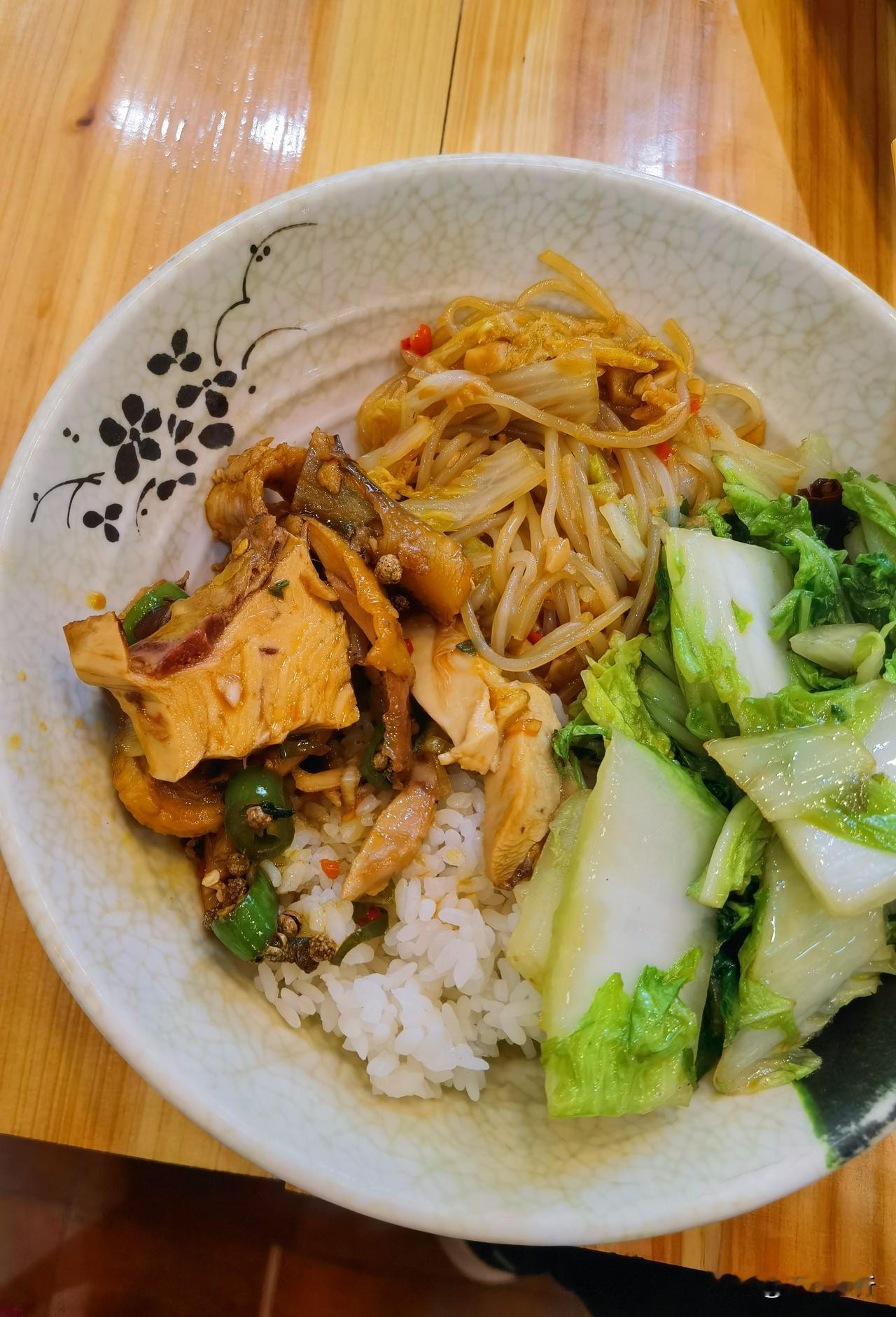 昆明旅游期间,到了午饭时间,在美丽新世界小区附近,偶遇这家食客排队吃的自助餐馆。于是进店美食体验一番。 美食店位于昆明五华区昆源路中段,靠美丽新世界小区2号门对面,导航可找到。美食店交通方便,门口有停车位,也有共享单车可使用。 这家清真自助餐美食店,有两间大屋子作为堂食的场所。有多种荤菜和素菜可供食客选择,一荤两素是12块,米线无限、米汤无限。 每位食客根据自己喜欢,选择菜品后有工作人员给予打菜。菜的分量还是挺多的,价格也还可接受。 ✨体会:饭点时间,看着食客排队打菜,估计味道很好。体验后,感觉也是这样的。