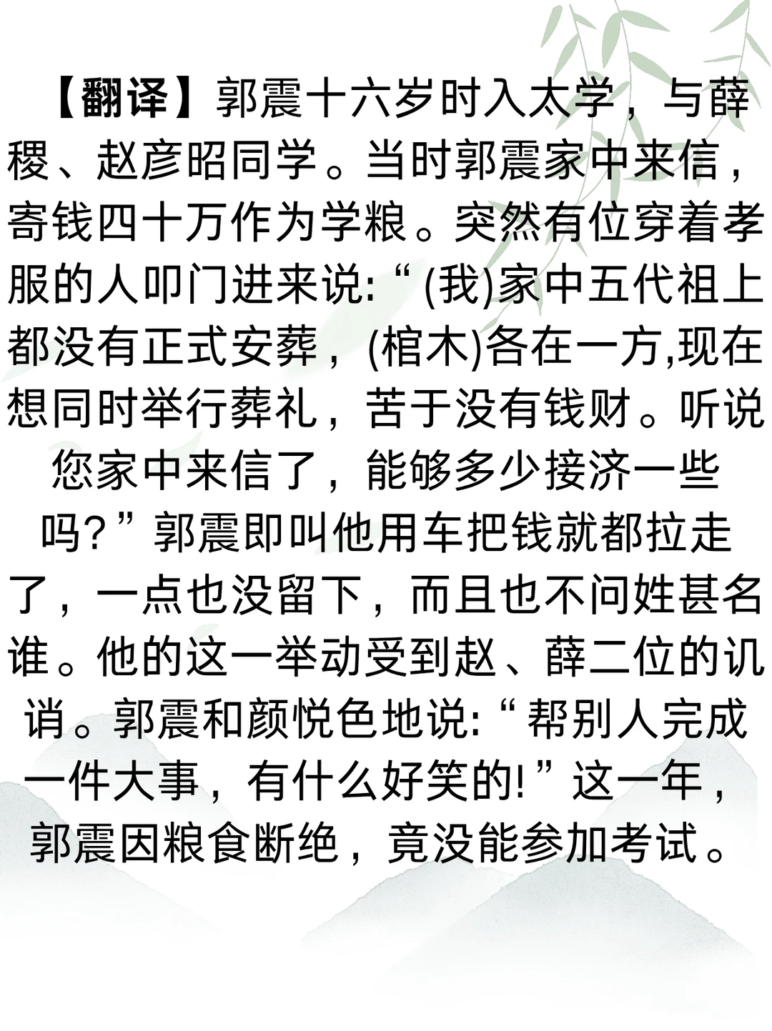 少年时的选择,四十万钱或许耽误了他一时的科举,却滋养了他一生的品格。善良从不是亏本的买卖,那些发自本心的善举,看似“不计后果”,实则在悄悄塑造着一个人的格局与底色,最终会以另一种方式回馈于己。