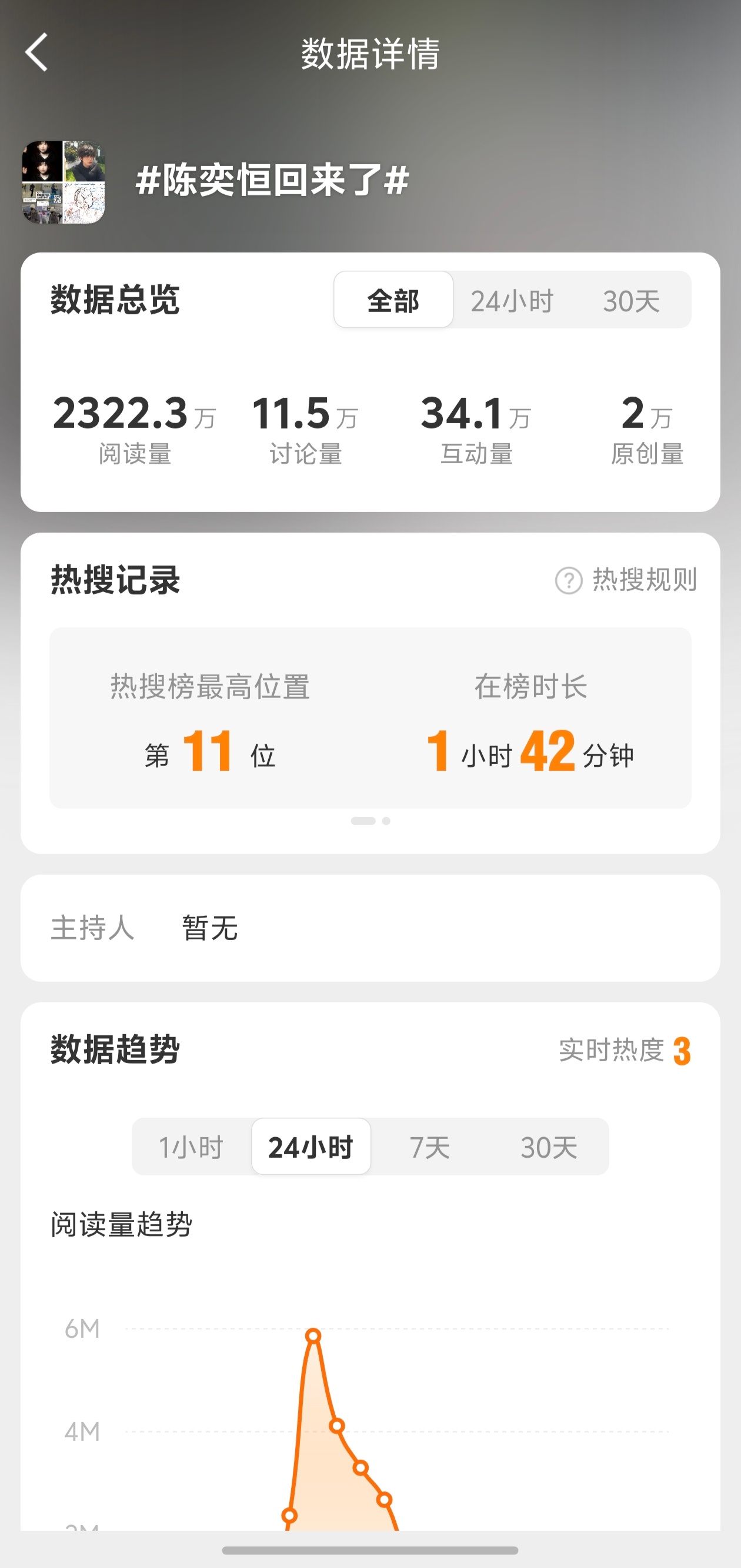 陈奕恒回来了 陈奕恒回来双榜高位rs🔥,文娱最高第3️⃣,在榜时长长达12小时