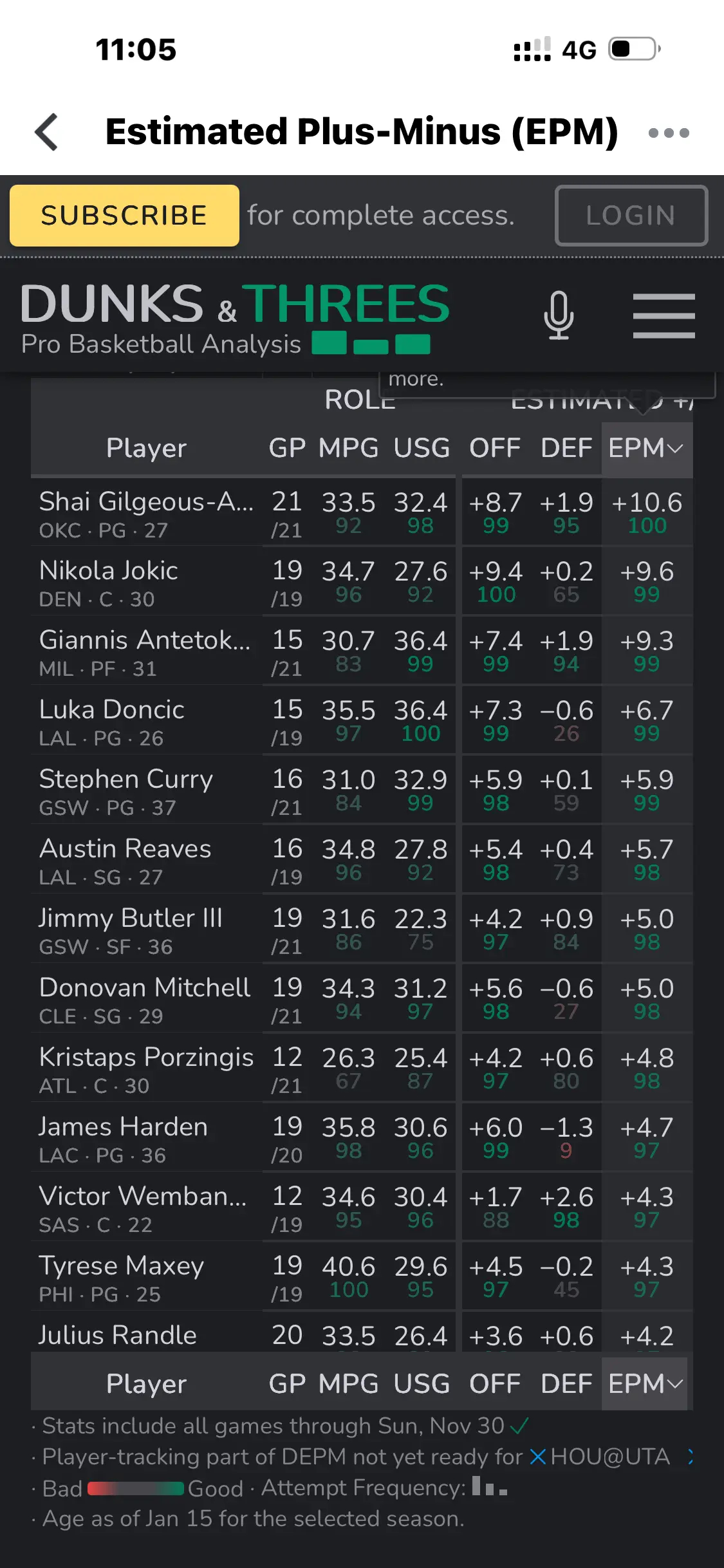 某扑看到的一篇关于联盟各项数据的排名,大哥总结,我分享给大家📈巴特勒均榜上有名,epm也排名第7☝️总结一下,就是开赛至今第一小前锋,联盟前10的水平。第一个是球员效率 联盟平均大概是15第二个是每100个回合他在场比联盟平均水平多赢多少分 相当于大号正负值第三个是胜率贡献值相当于有这个球员在为这个球队多赢了几场球第四个是替代球员价值 是说球员比联盟里随便找到的轮换级球员 多贡献多少金州勇士 |jimmybutler