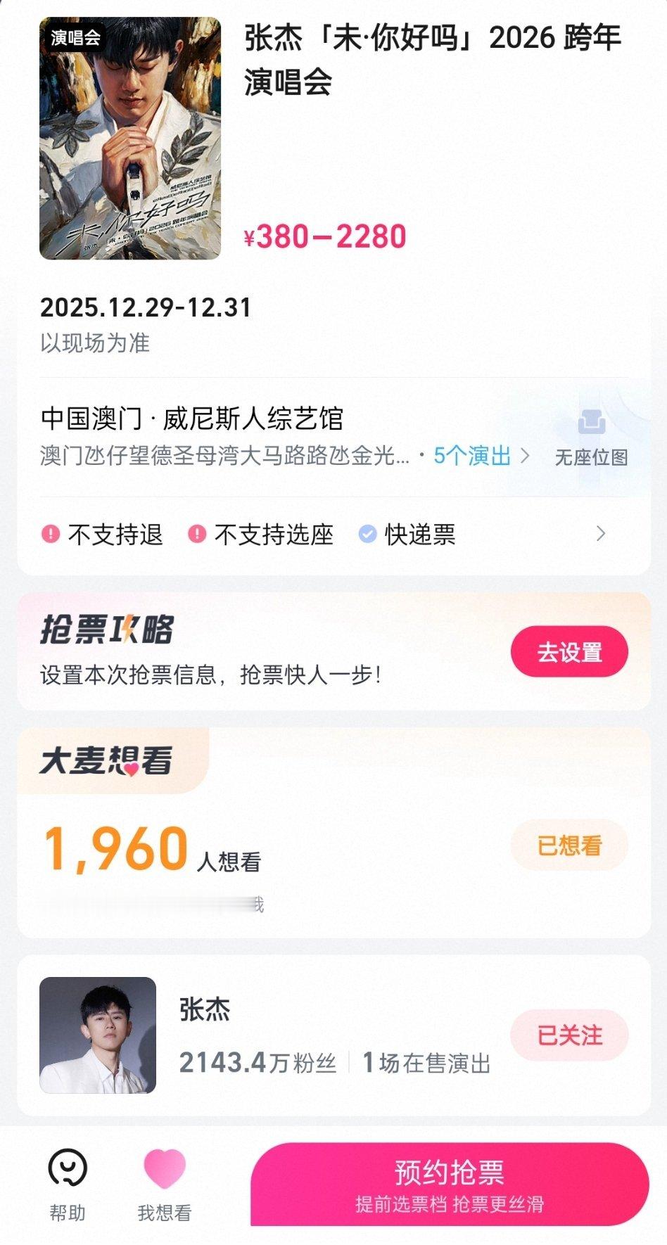 张杰跨年演唱会2026张杰澳门跨年演唱会重磅官宣,12月29.30.31日澳门威尼斯人综艺馆这次跨年依然还是五个小时的抖音直播澳门今年吃的太好了年初1982年尾跨年演唱会澳门到底有谁在张杰佛山演唱会明天12月2日三开